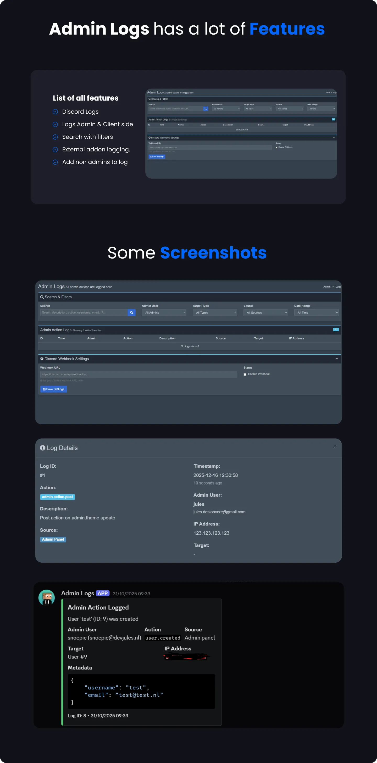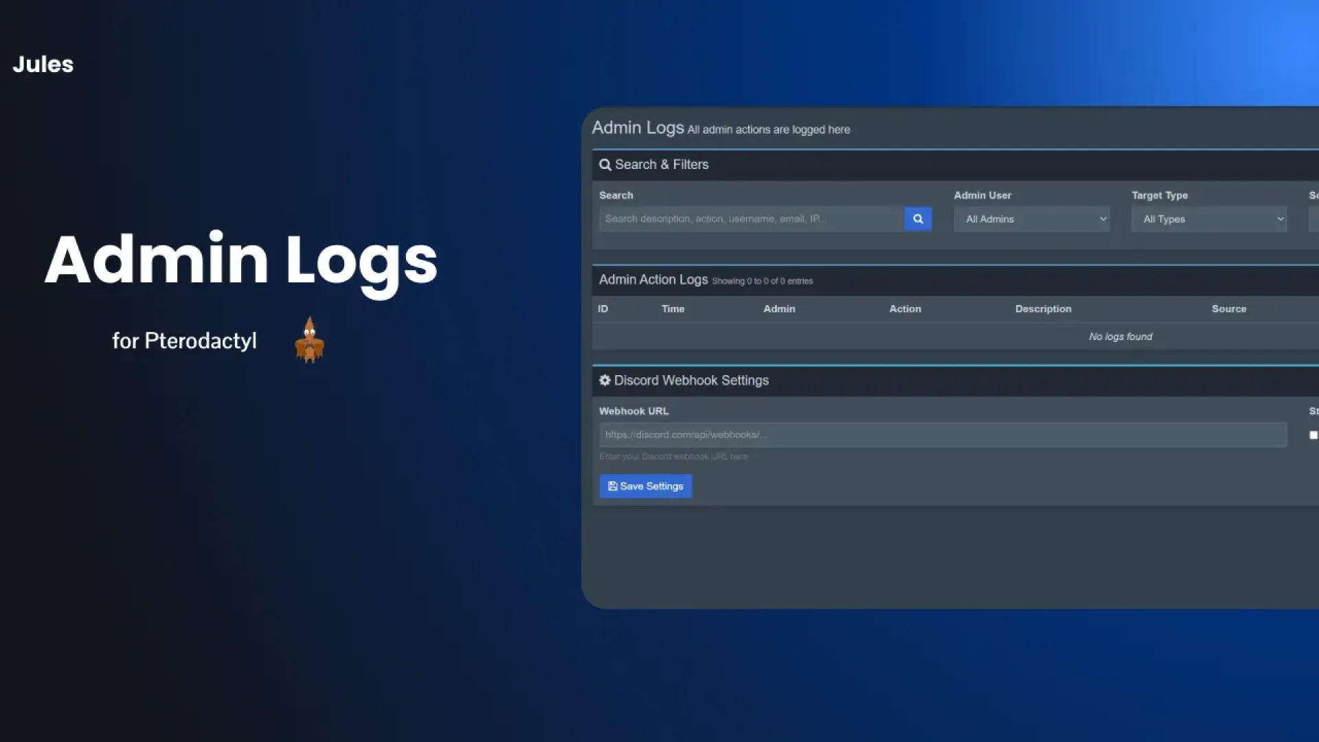 This addons logs all the admin actions on the pterodactyl panel. It also logs the actions of the client side