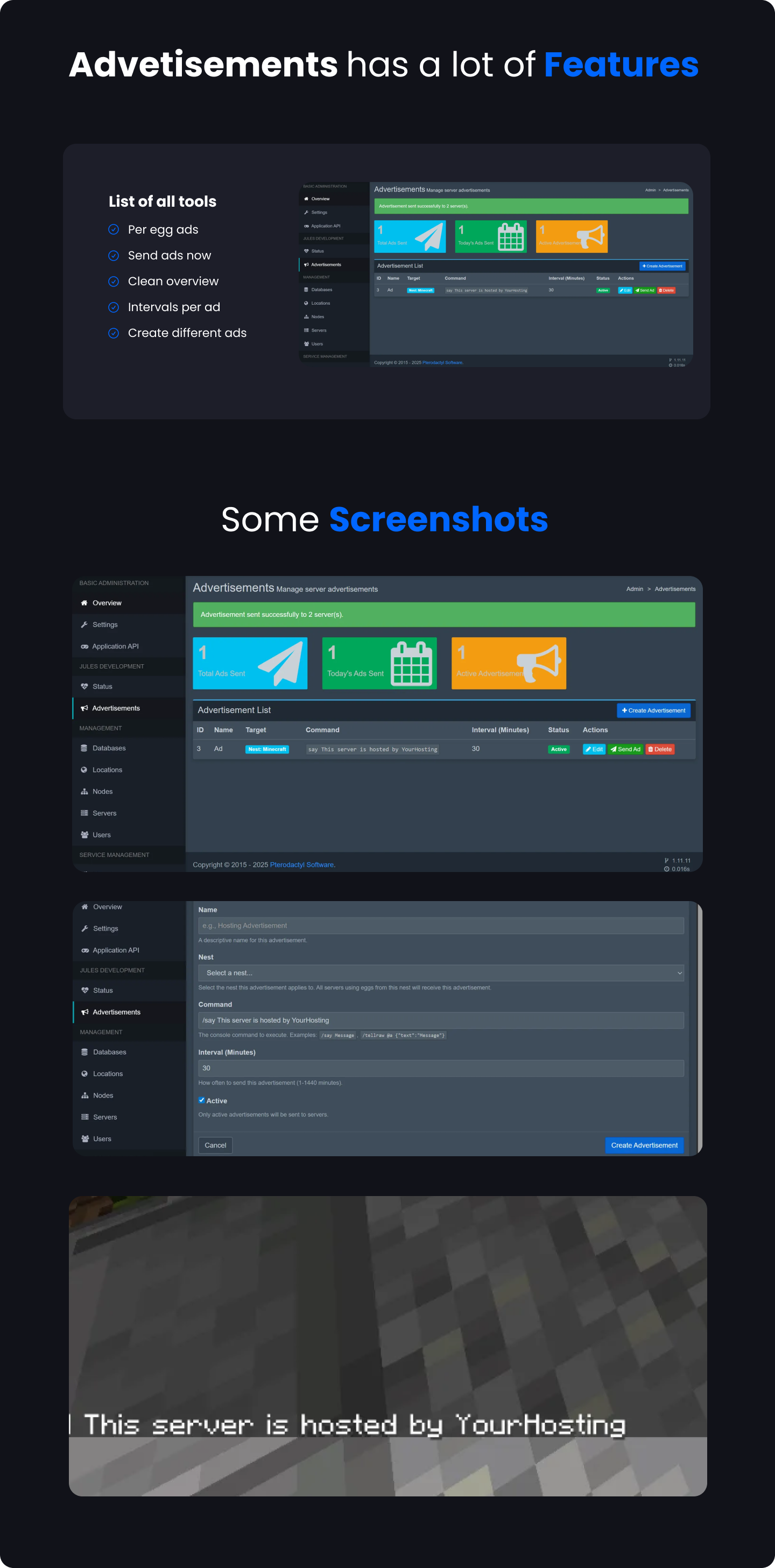 Advertisements Addon | Pterodactyl