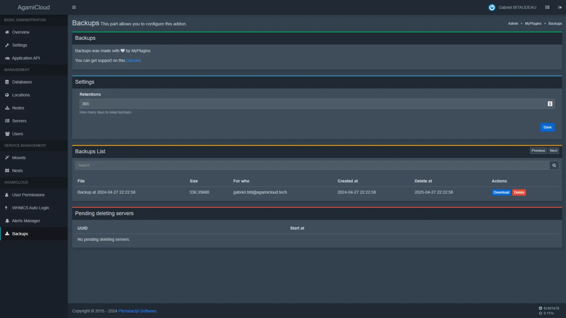 Backups on delete for Pterodactyl