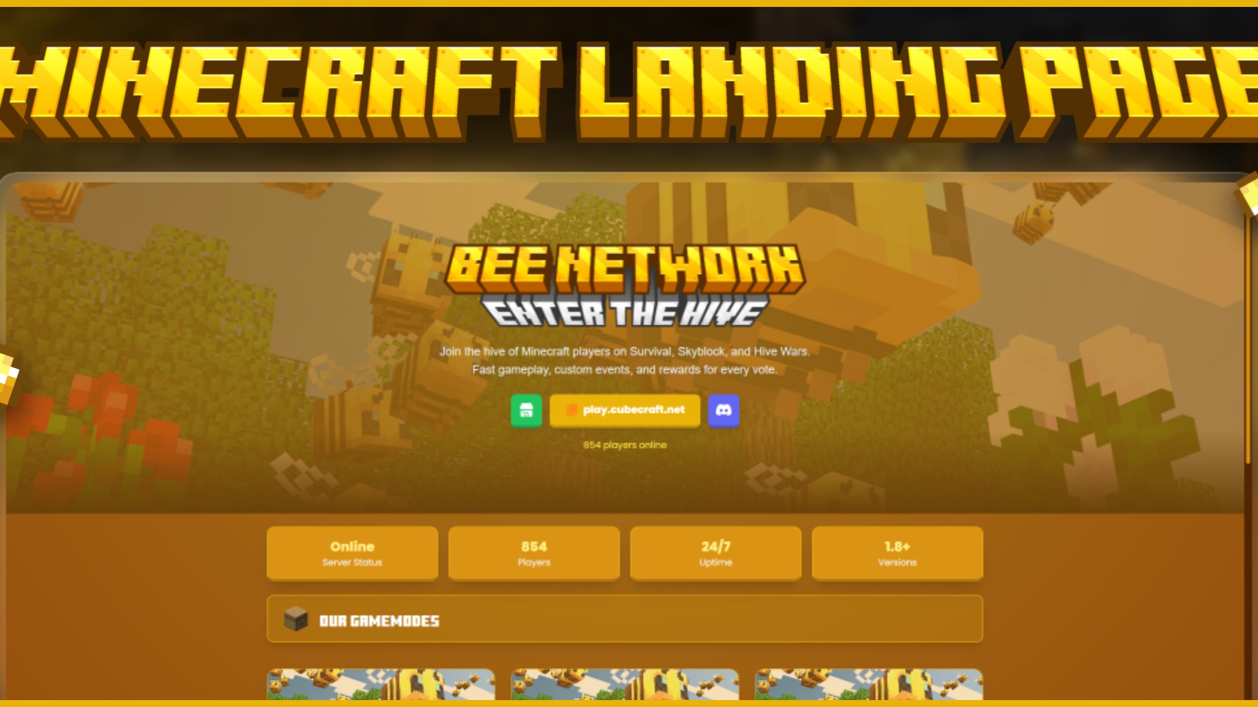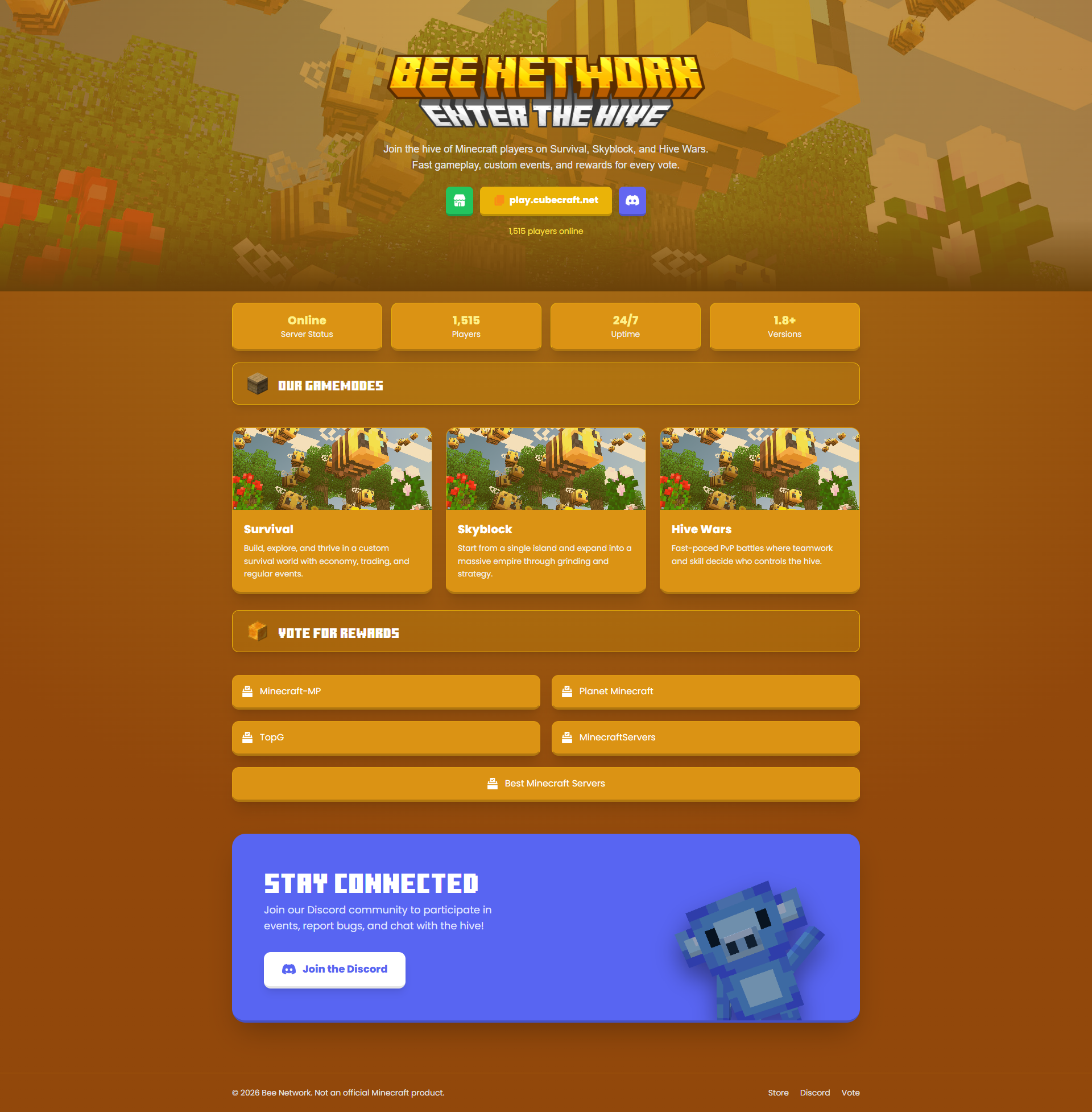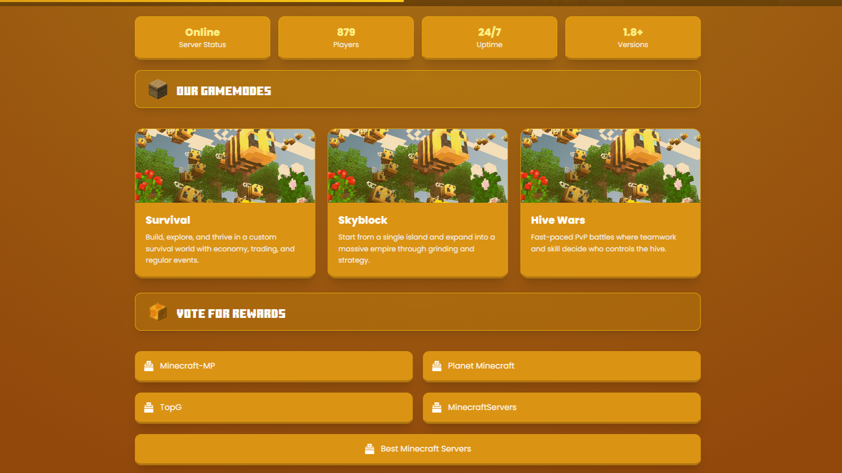 A clean Minecraft landing page to show your gamemodes and voting links.