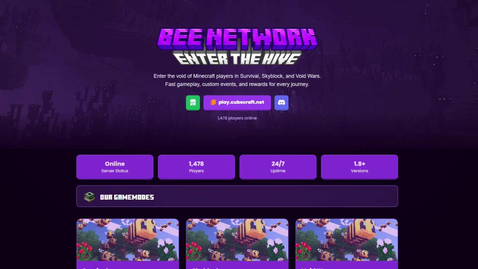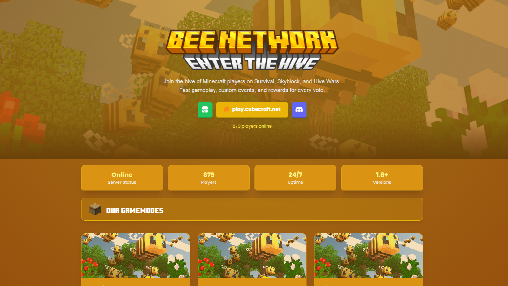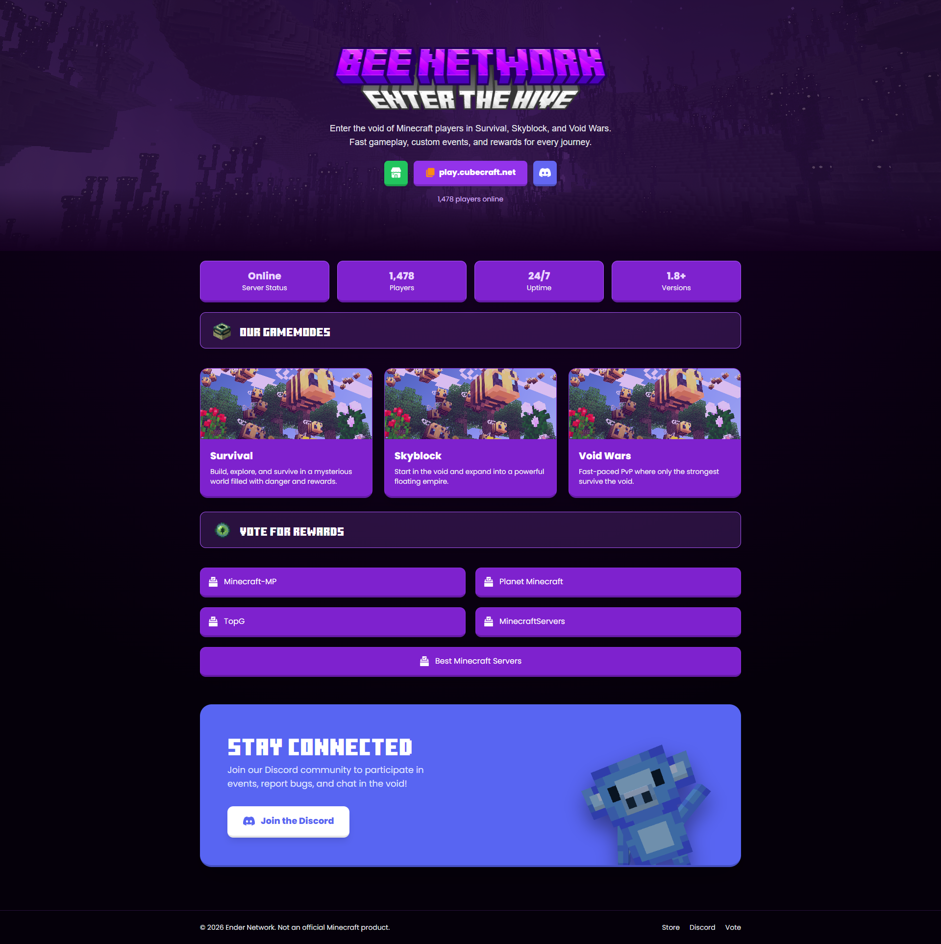 A clean Minecraft landing page to show your gamemodes and voting links.
