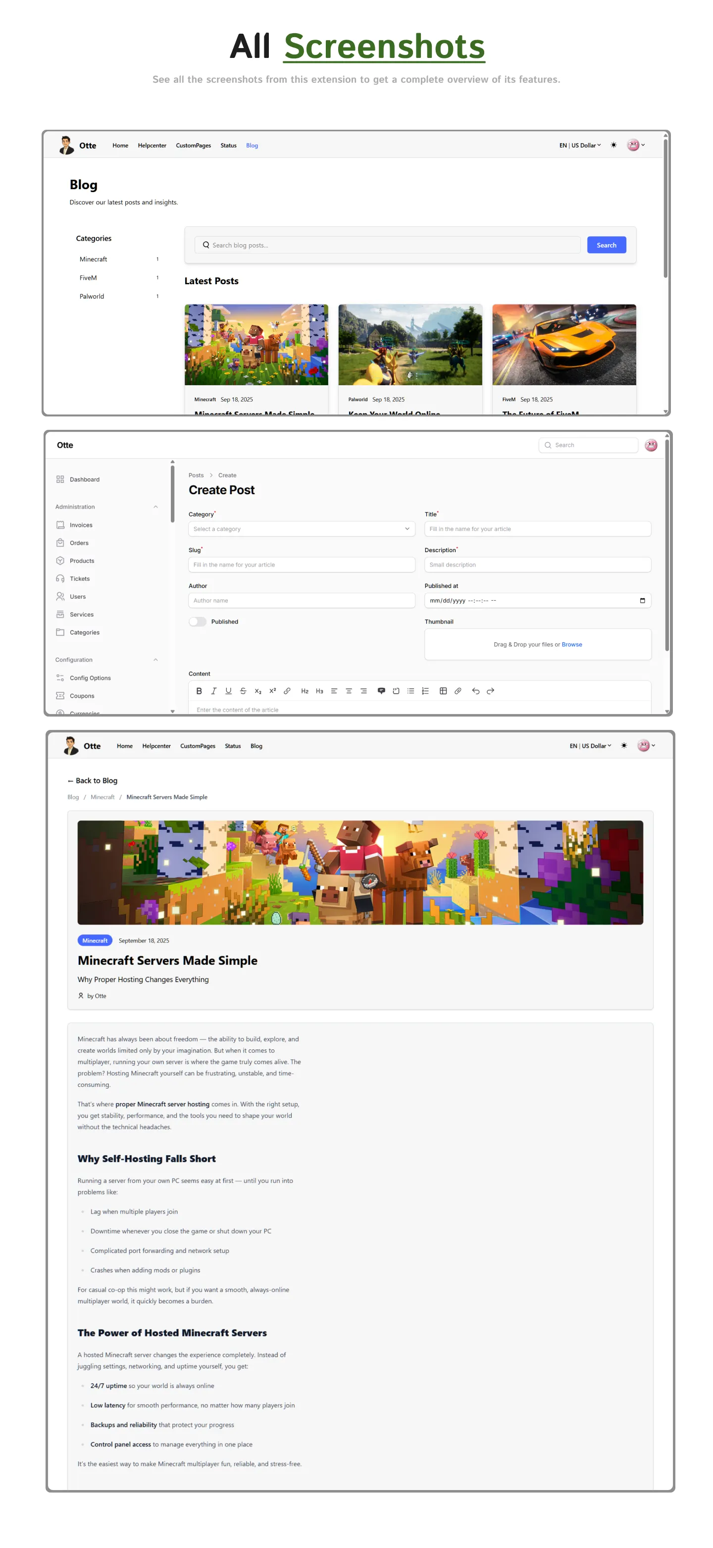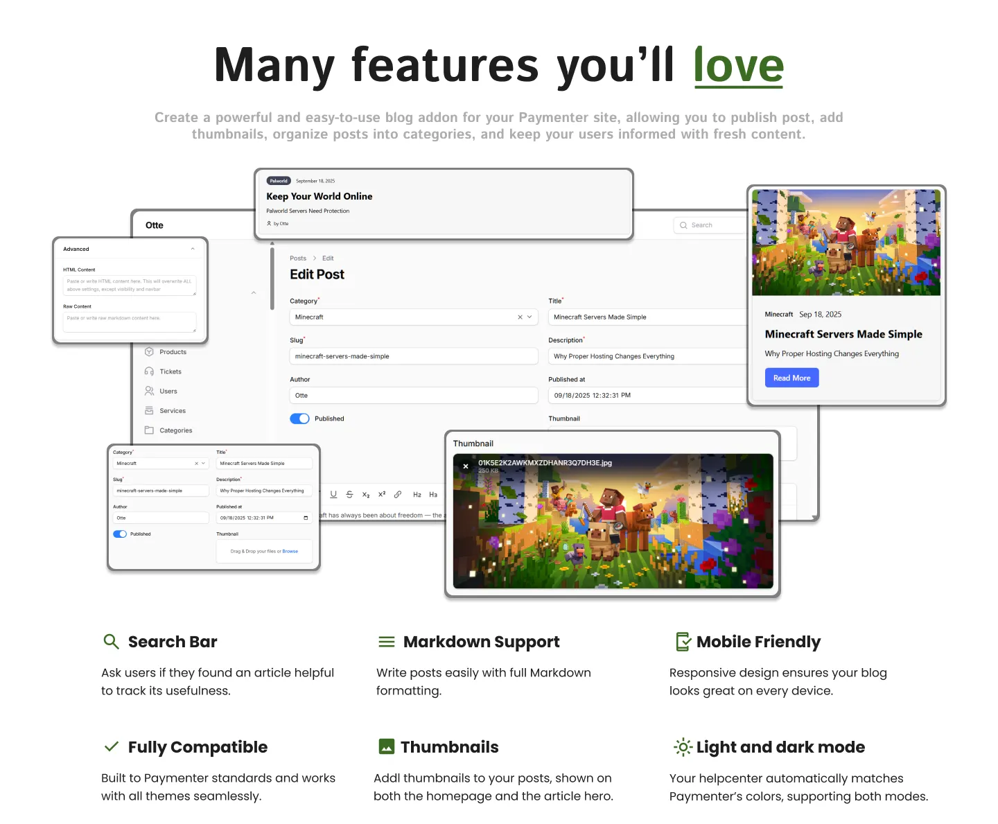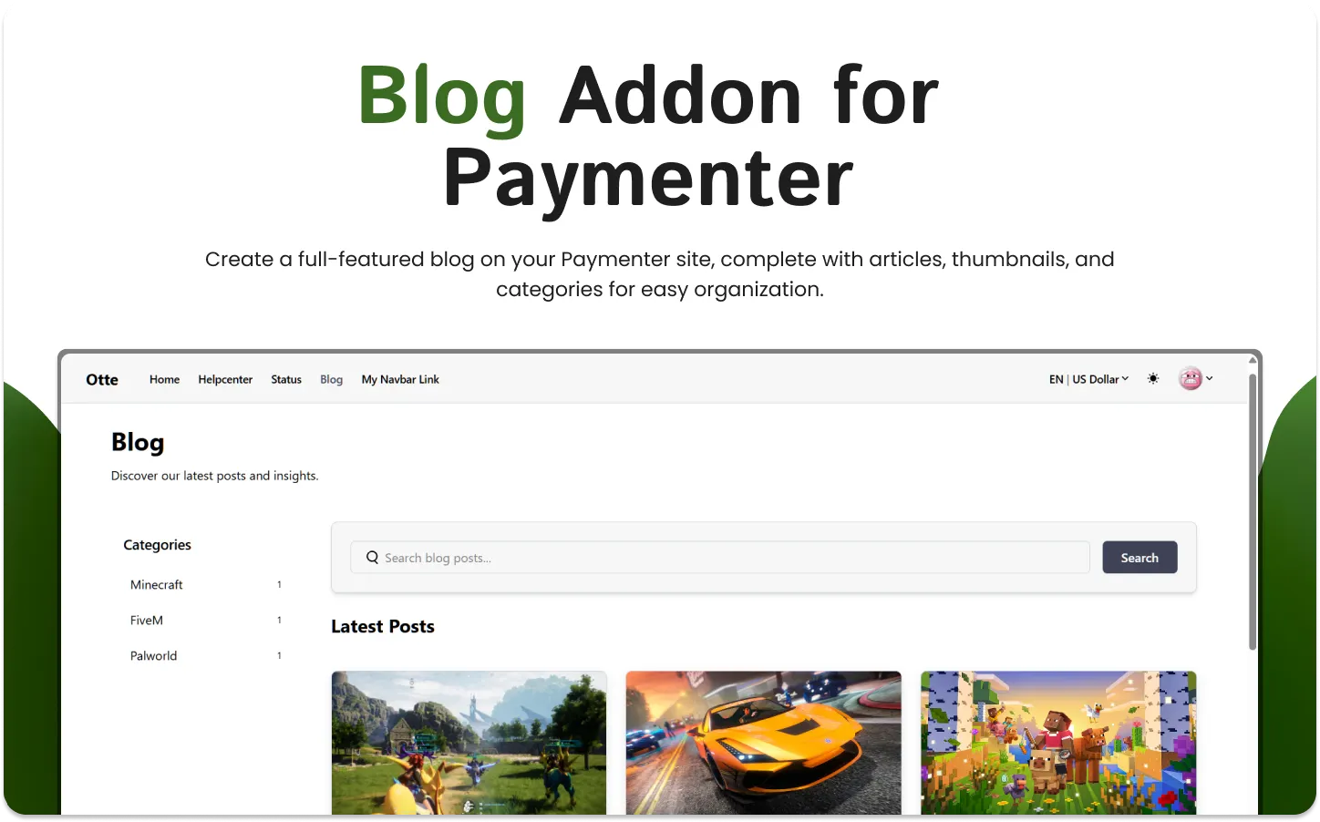 Add a simple blog to Paymenter with posts, thumbnails, and categories.