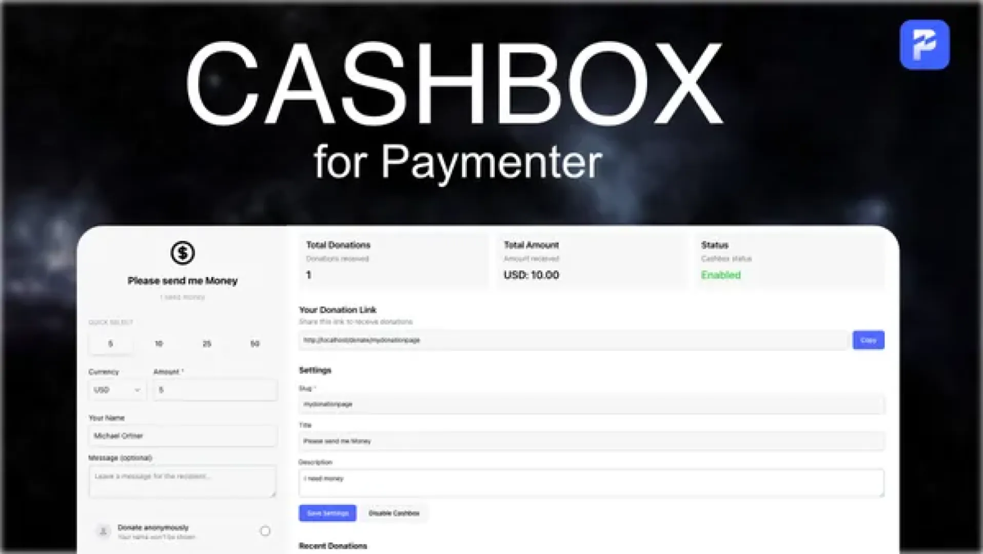 With this system, users can easily create their own personalized donation link for their account. They can customize it with a title and description, activate or deactivate their cashbox at any time, and track recent donations in real time. Both guests and registered users can donate seamlessly, making it simple to support creators, projects, or causes.