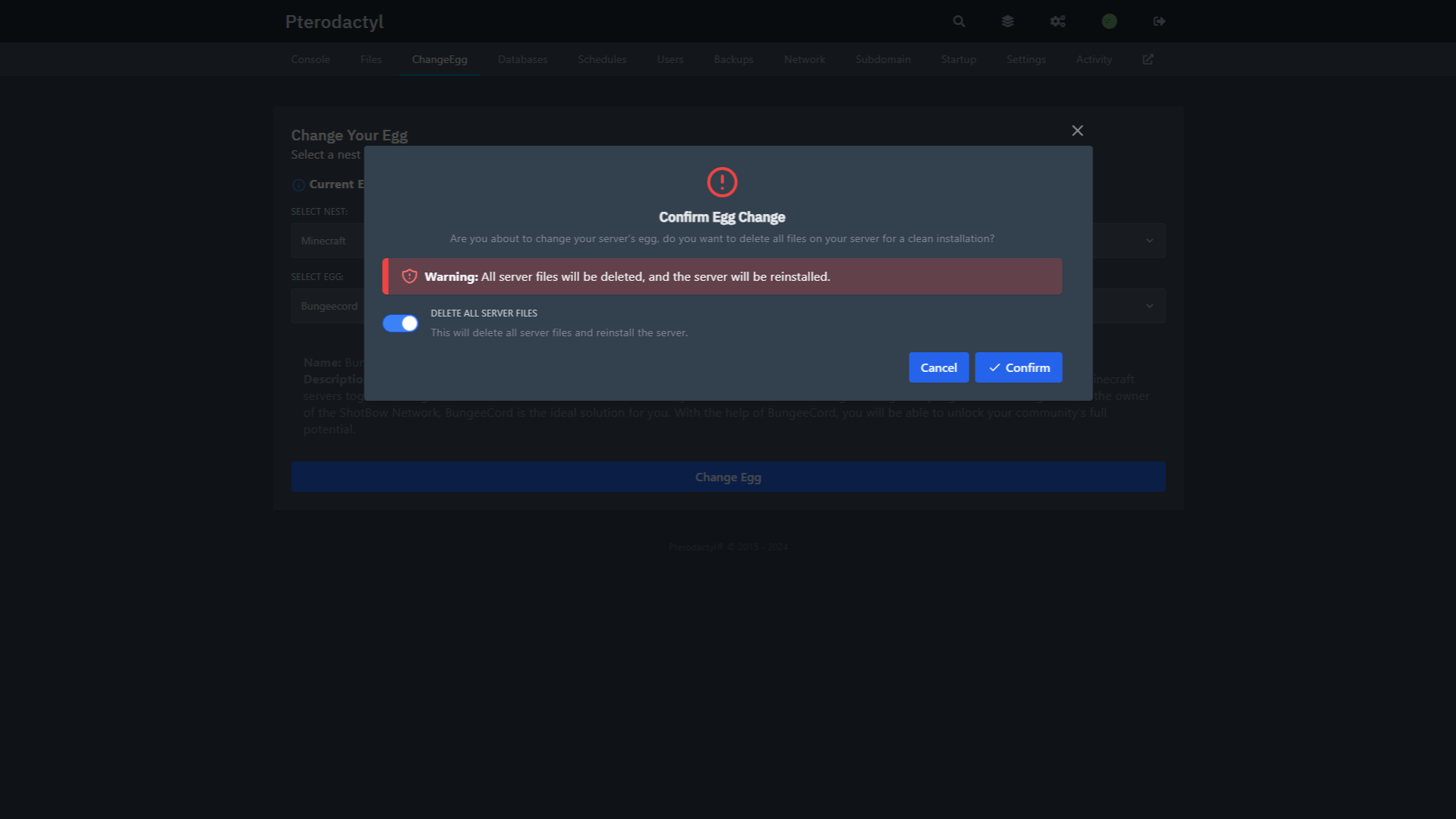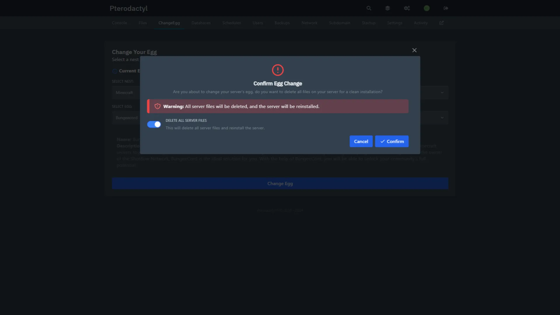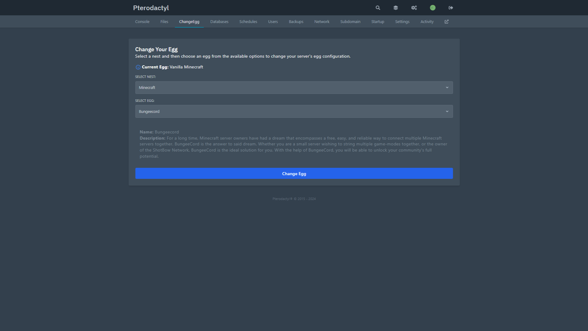Give your users the ability to change their server's Egg.