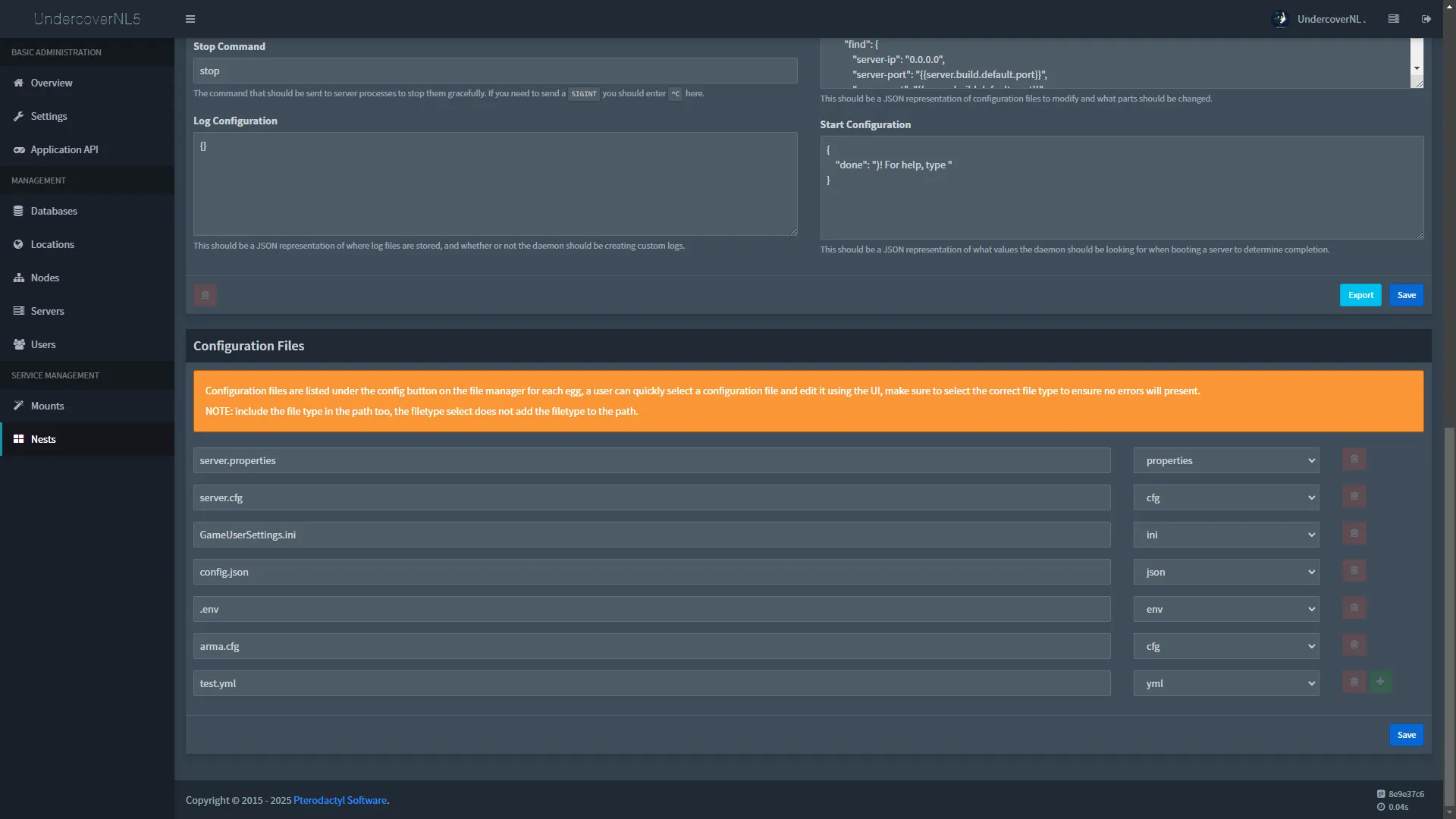 You can specify all the configuration files for each egg in the admin area egg settings. Currently possible: .properties, .env, .json, .cfg, .yml and .ini, but for new file types please create a ticket in my discord and I will try to add them as soon as possible.