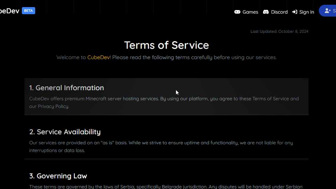 Terms of Service Page