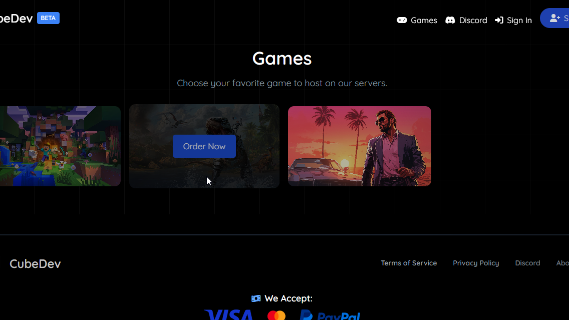 Modern Dark UI site for you Game Hosting with easy configuration built using php and html, css and java script
