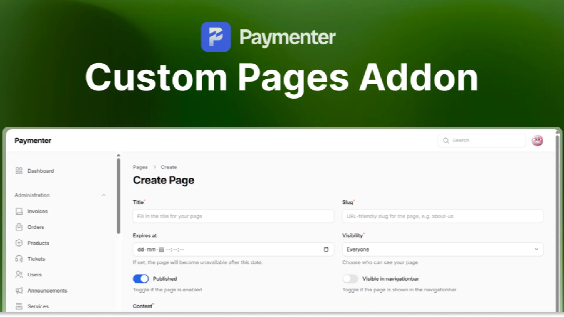 Custom Pages Addon | Paymenter