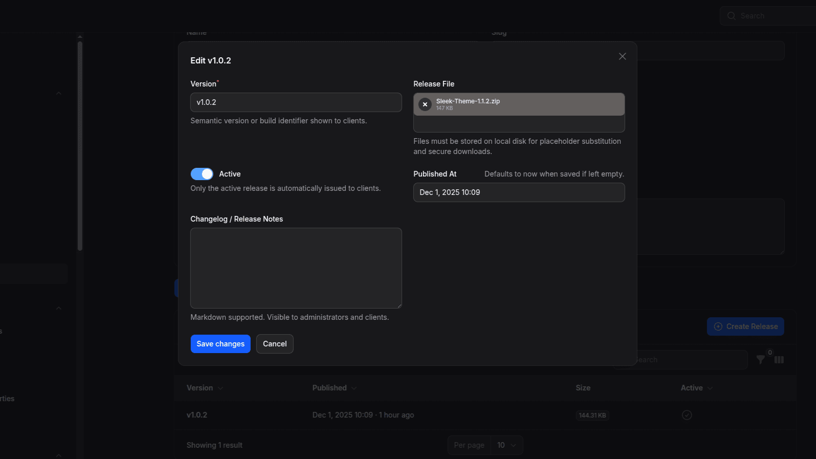 - Queued release reissue workflow with changelog/checksum context so active services auto-sync to new builds.
