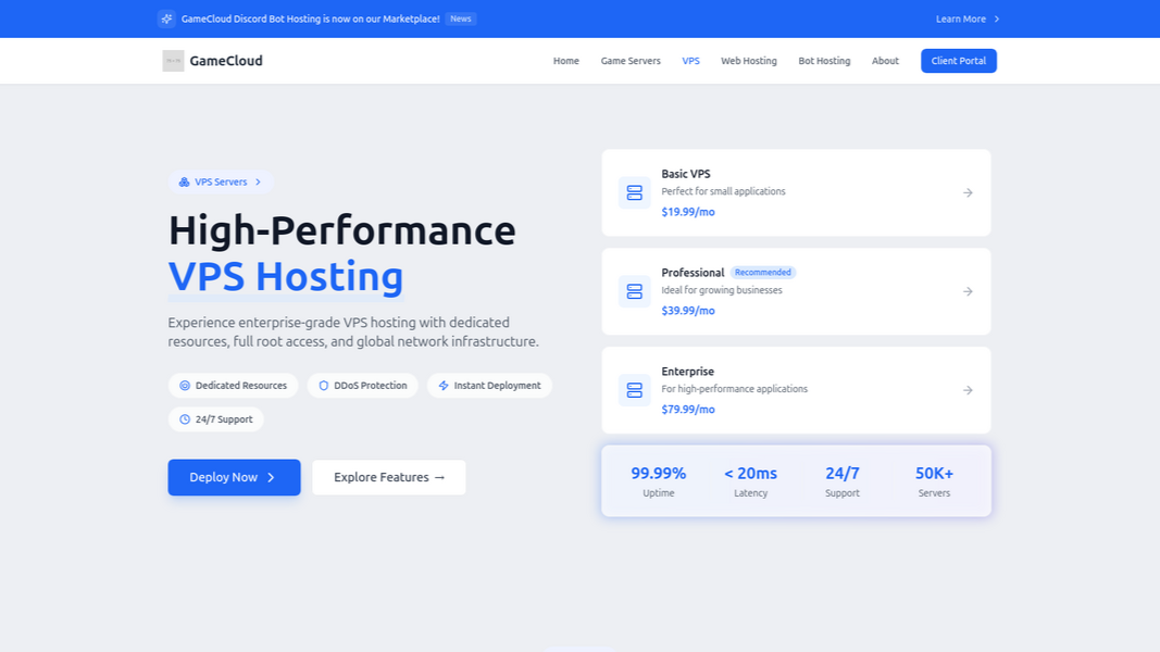 A Game Hosting Company Front End Website Made in React & Tailwindcss
