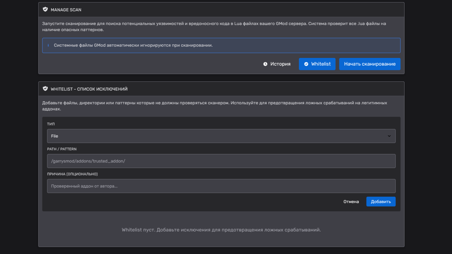 - A: The scanner covers all publicly known GMod backdoor patterns. New patterns can be added via updates.