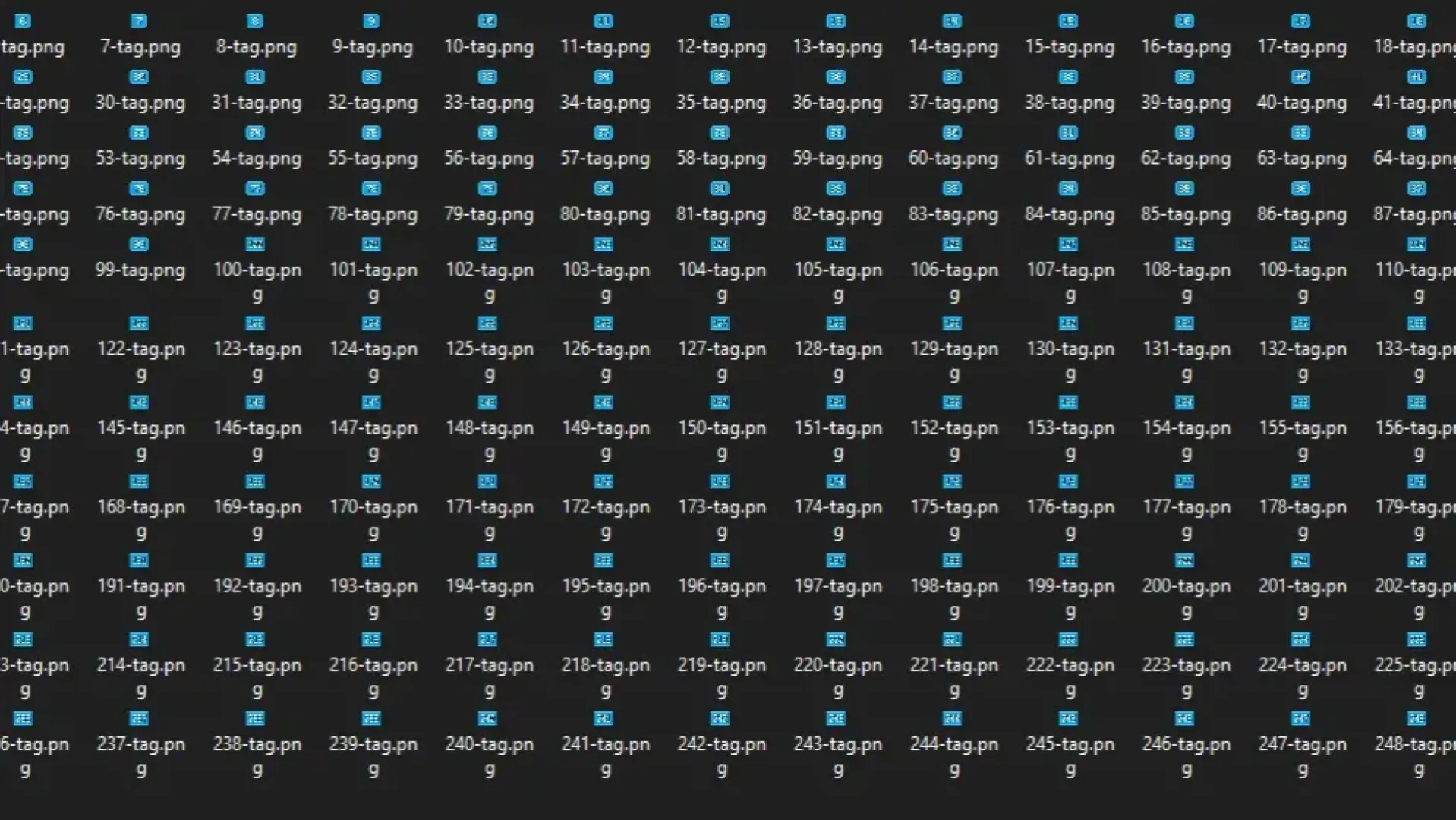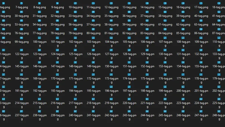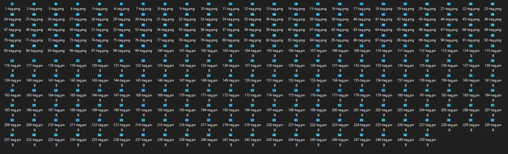 - 250 PNG tag files (1-tag.png → 250-tag.png)