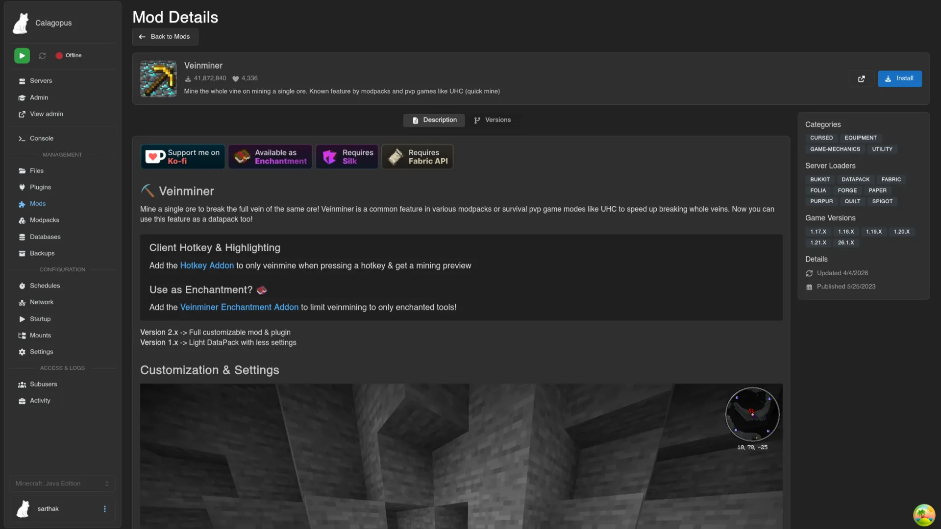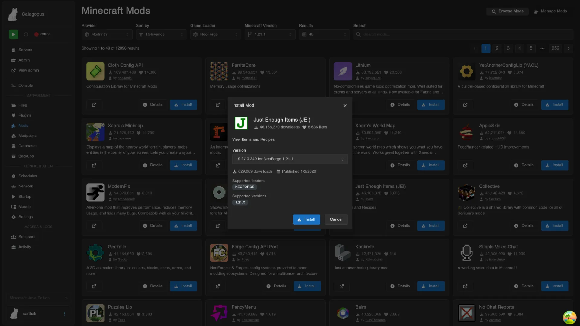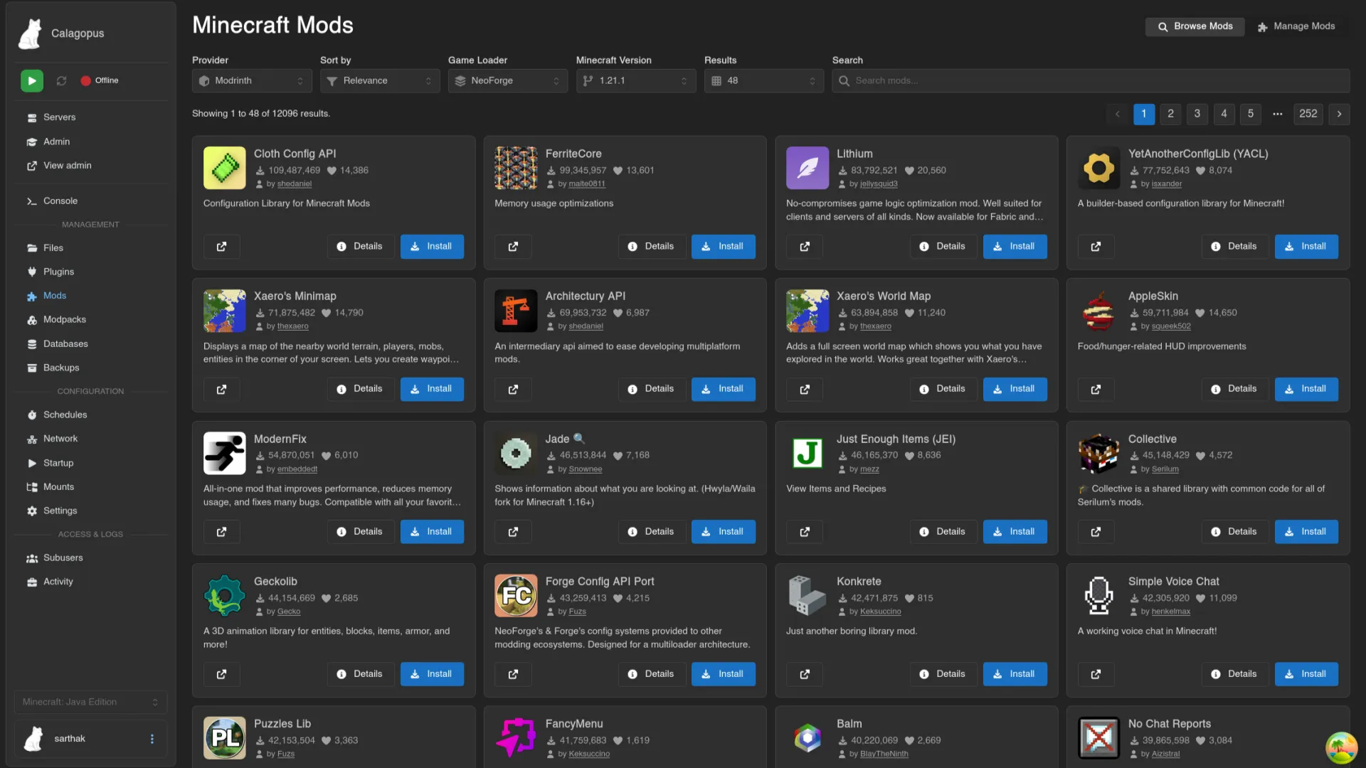 An easy-to-use minecraft mod installer and manager for Calagopus.