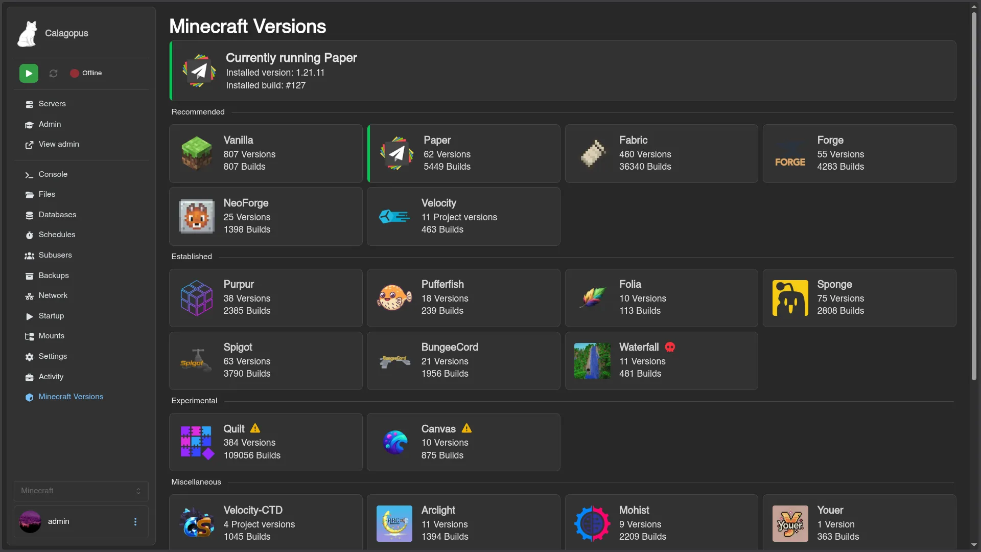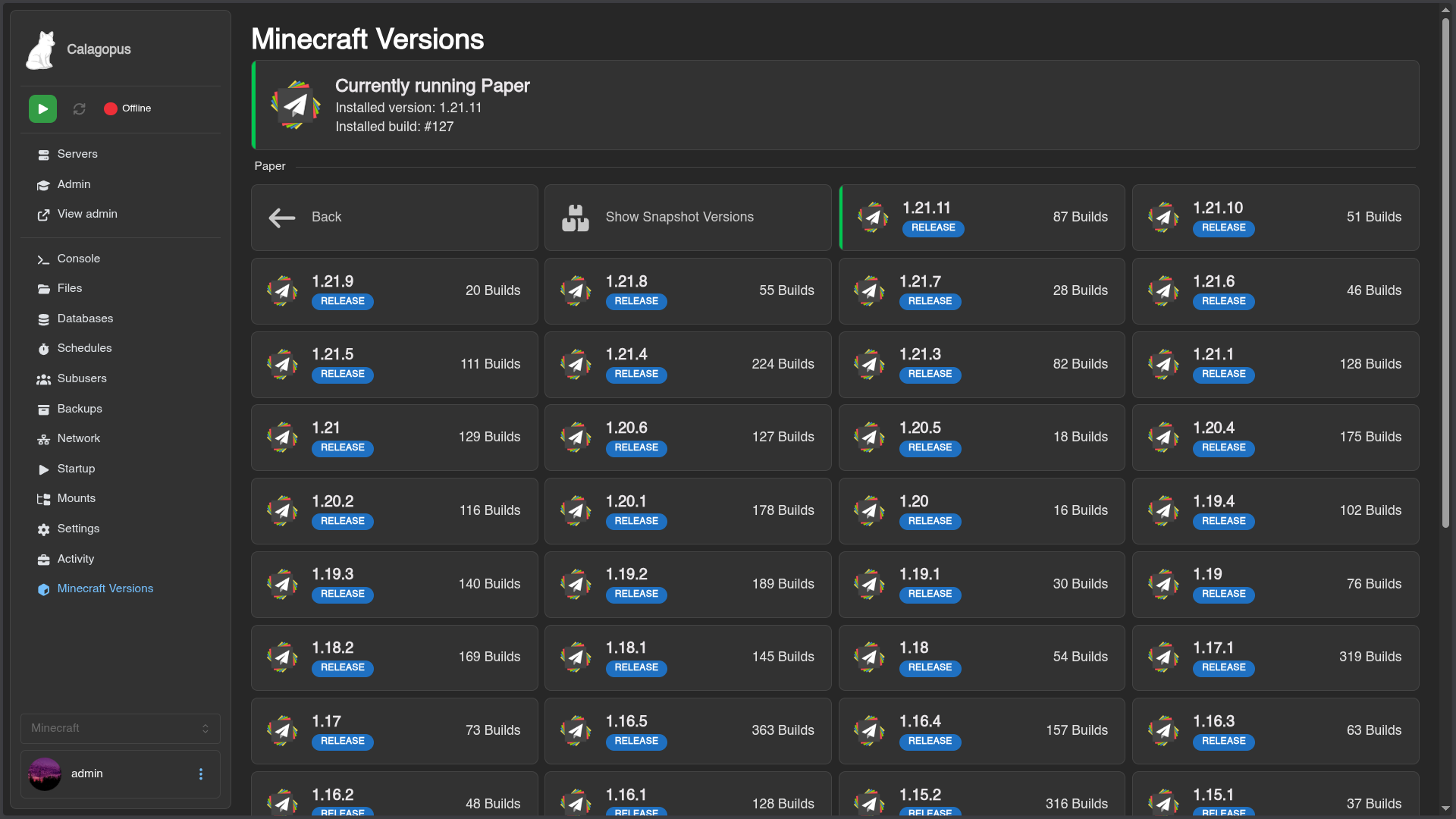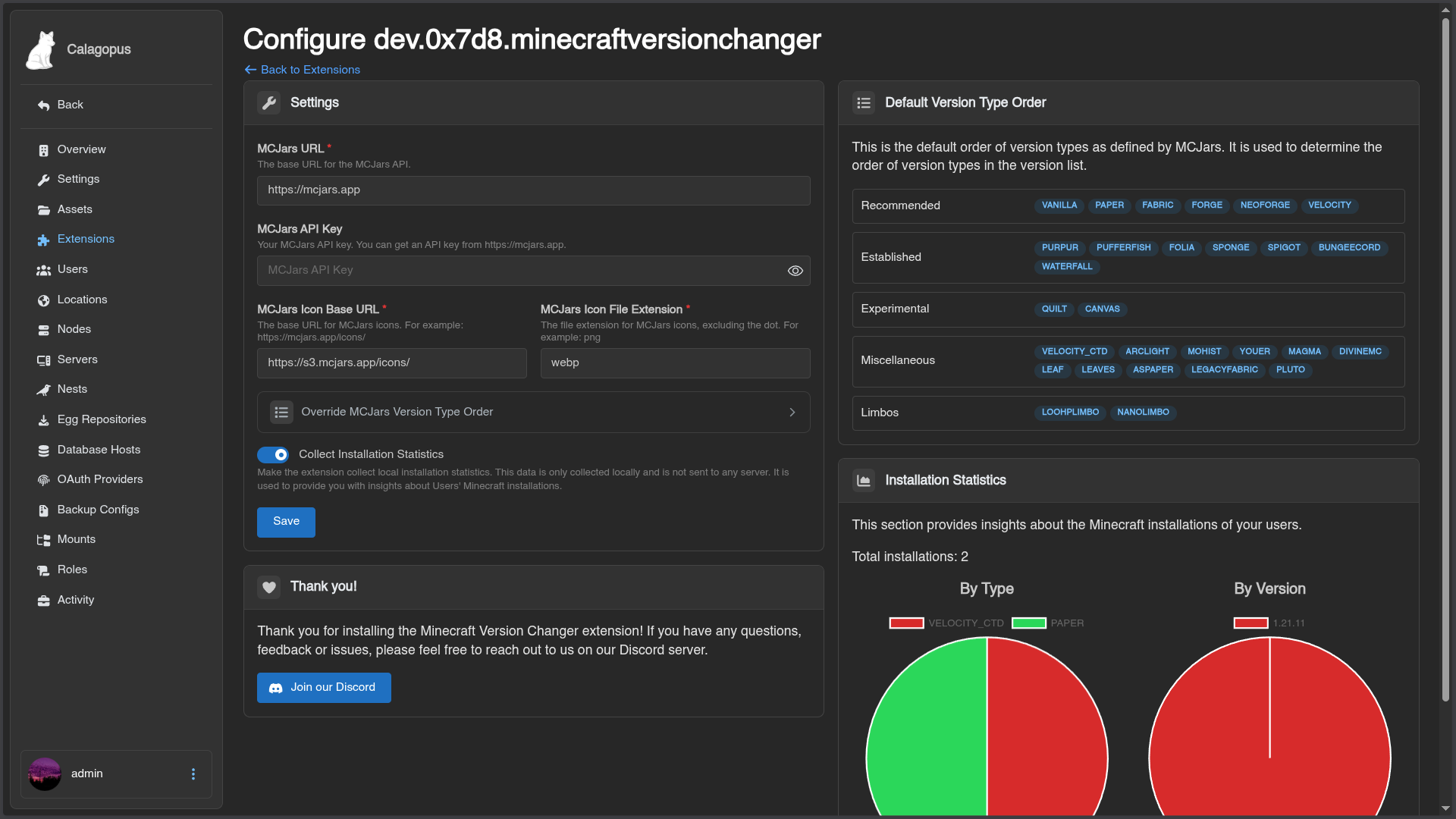 Version Changer allows you to adjust your minecraft servers version instantly. Now for Calagopus!