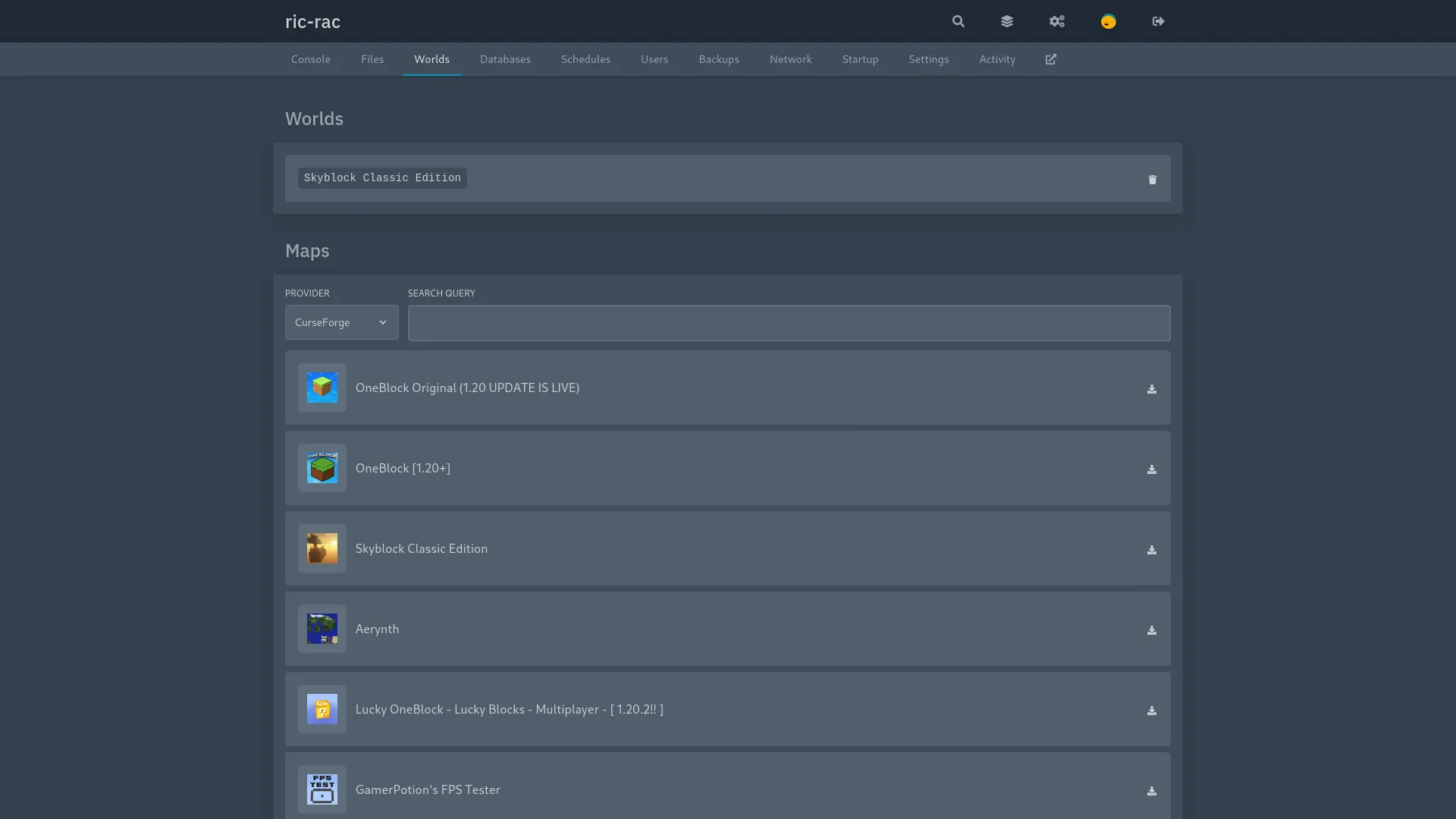 This addon will allow you to manage "Minecraft: Java Edition" worlds (and download maps!) right from Pterodactyl Panel.