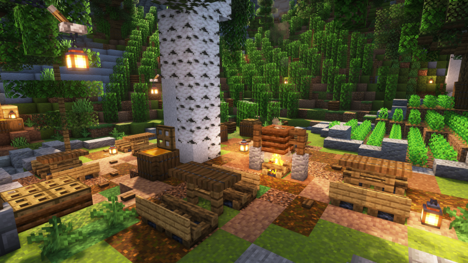 The Natural Lobby is a modern lobby full of naturalistic details measuring 200x200. In the center we find the generation point surrounded by trees, rivers, agricultural fields, natural decorations and typical mountain houses. Furthermore, four zones are available to insert the NPCs of the modes.