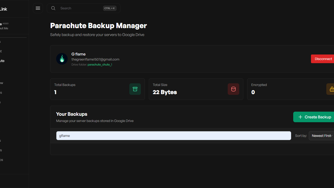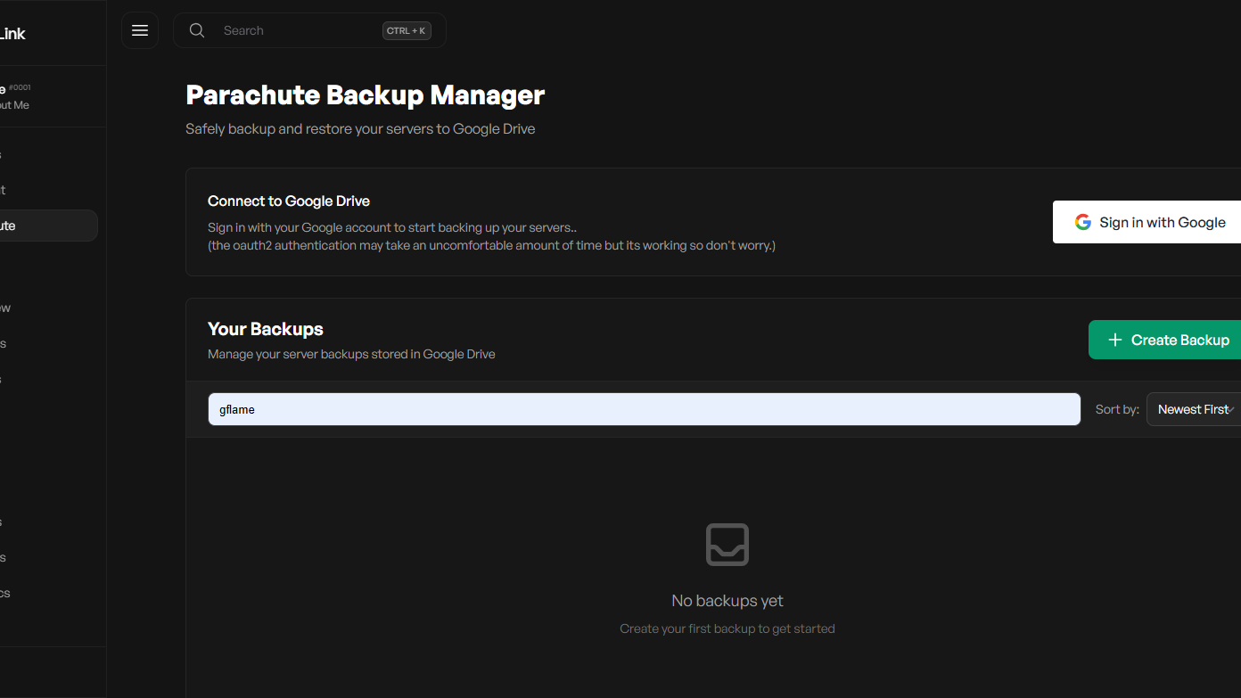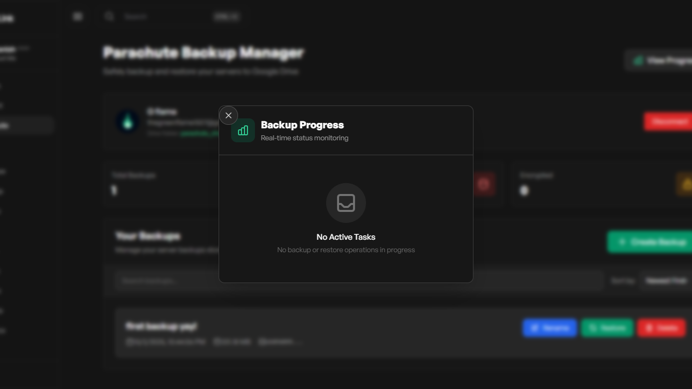 - Connect your server to Google Drive via OAuth and upload download and restore server backup files.