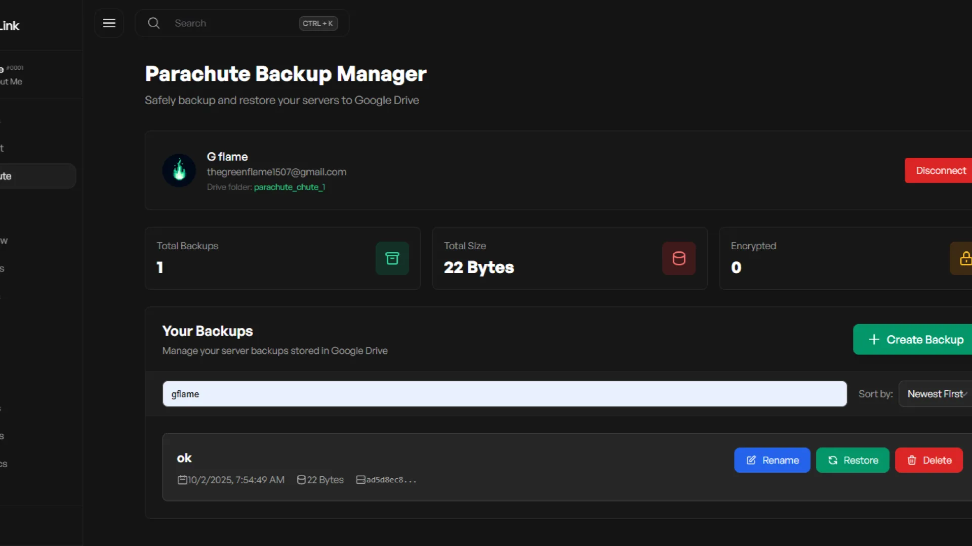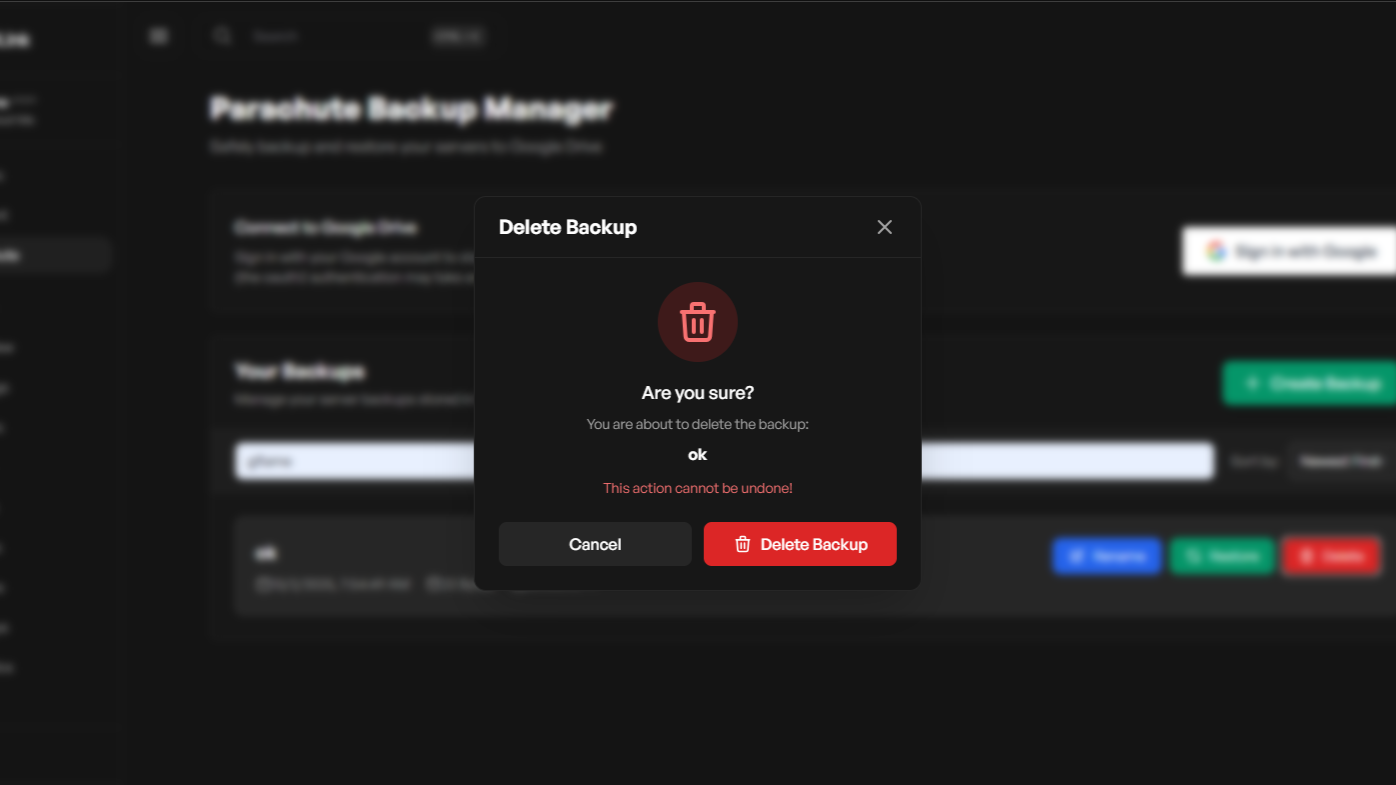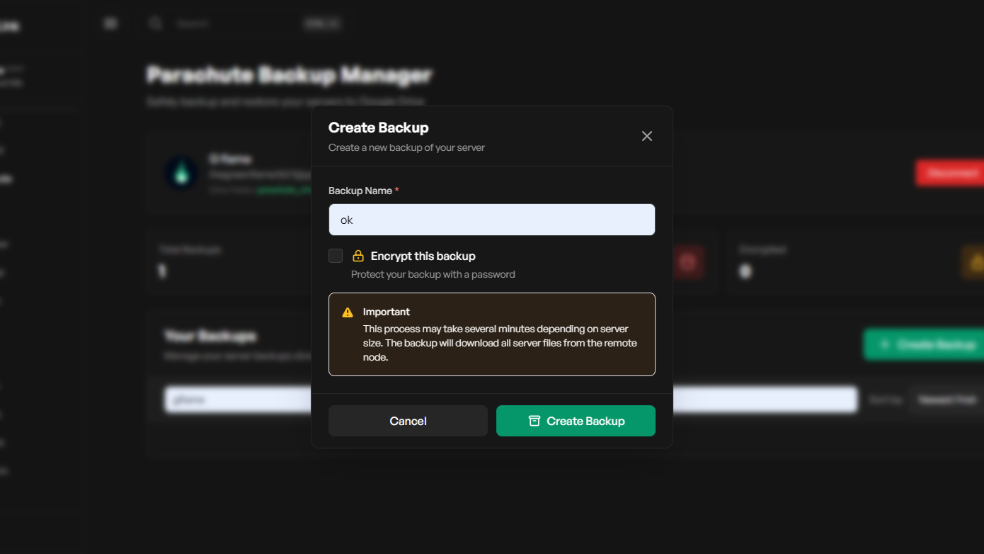 - Connect your server to Google Drive via OAuth and upload download and restore server backup files.