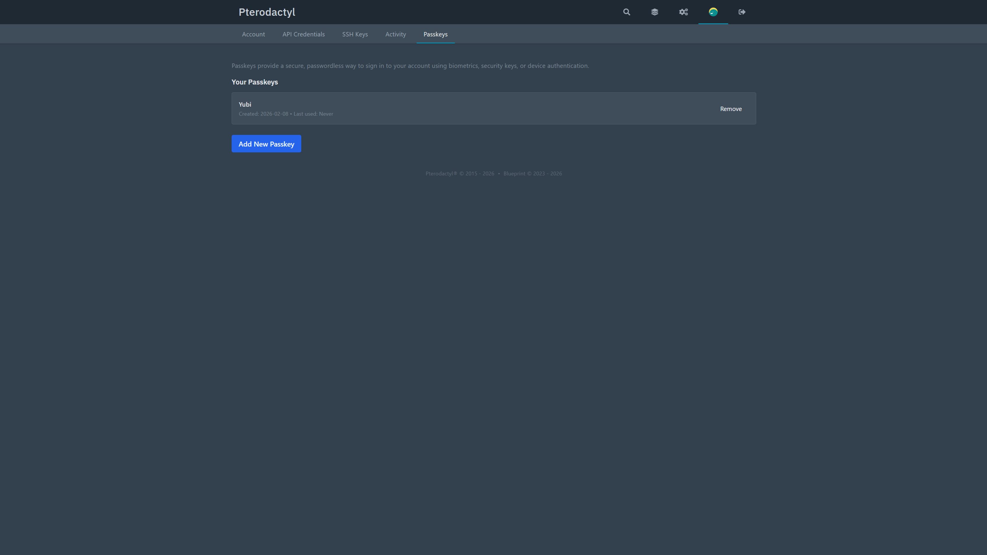 With HSS Passkey, you can easily upgrade your Pterodactyl panel to support passwordless login and stronger, phishing-resistant authentication—ideal for both personal use and larger teams who need trusted, frictionless access.