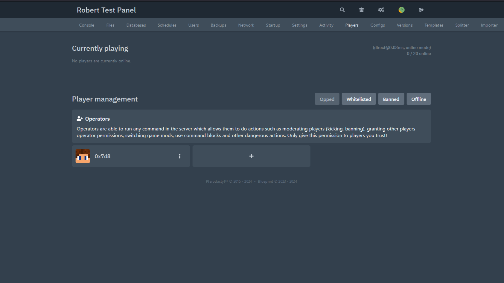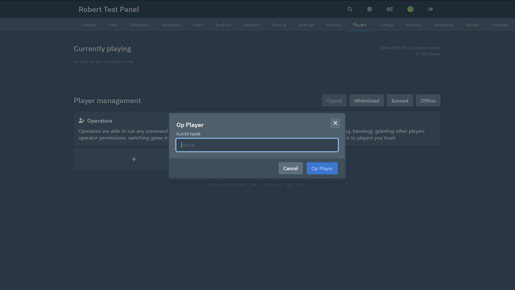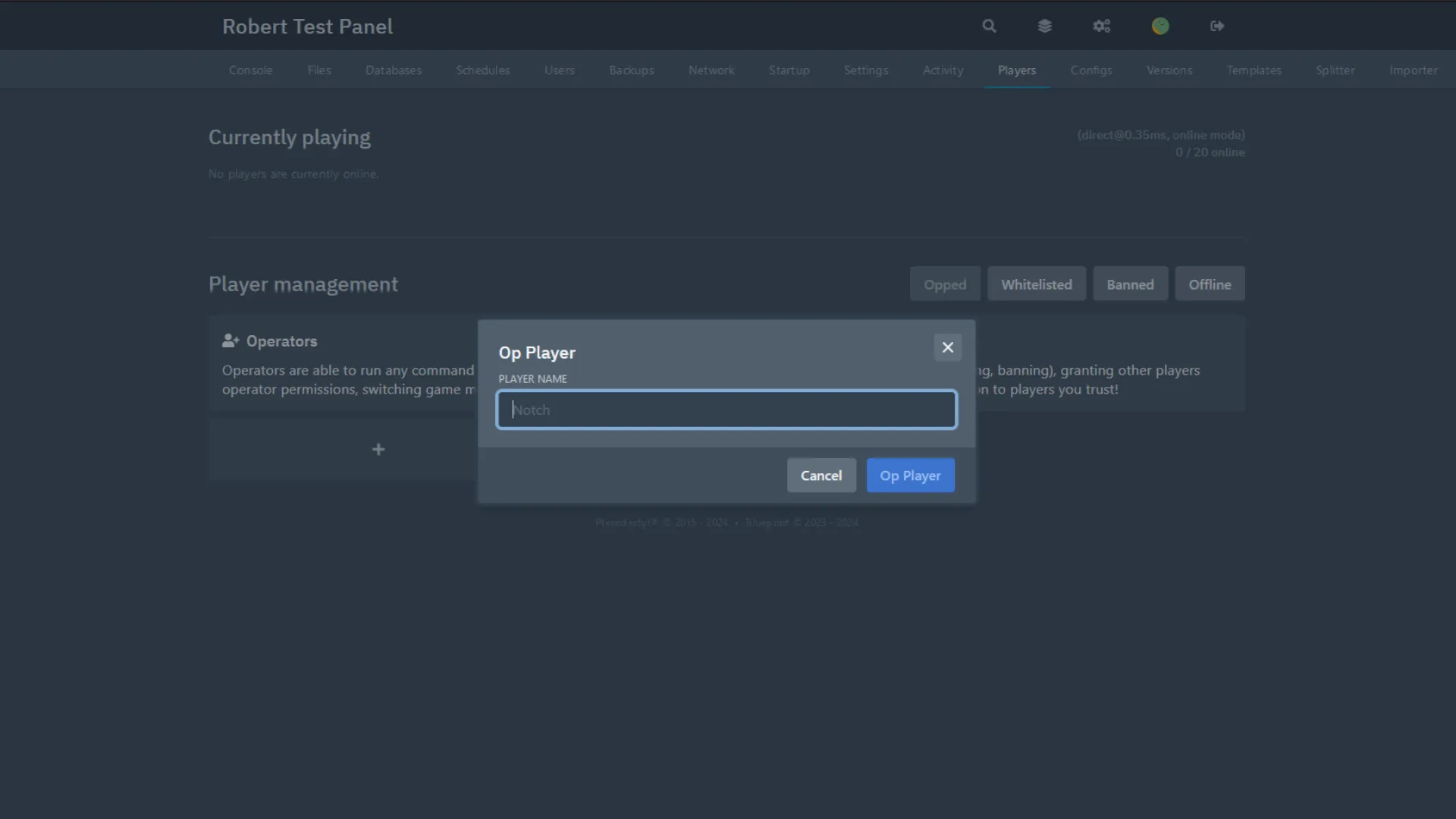 This extension adds the ability to easily manage minecraft java edition players directly in your panel interface.