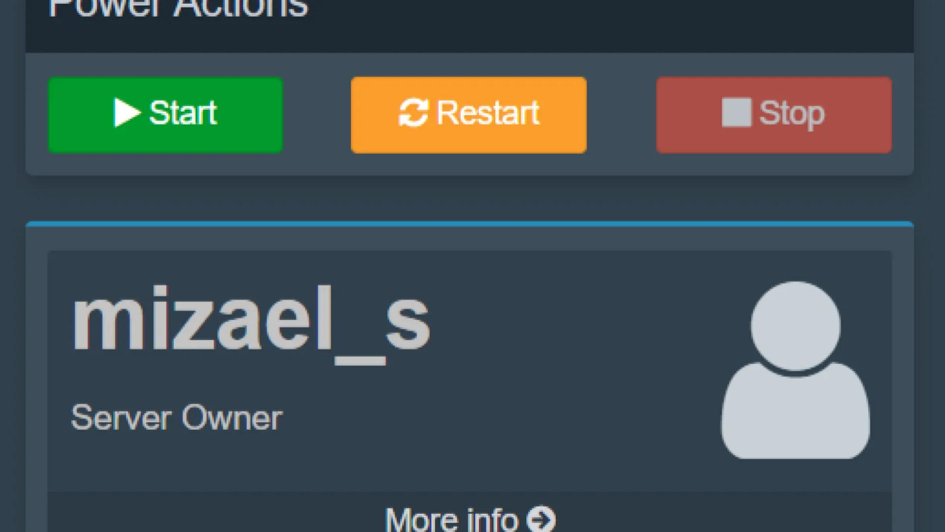 Start, stop, restart, and kill servers from the admin panel. Direct integration with Pterodactyl for a seamless experience. Quick and easy installation with minimal setup. Provides real-time power status feedback.