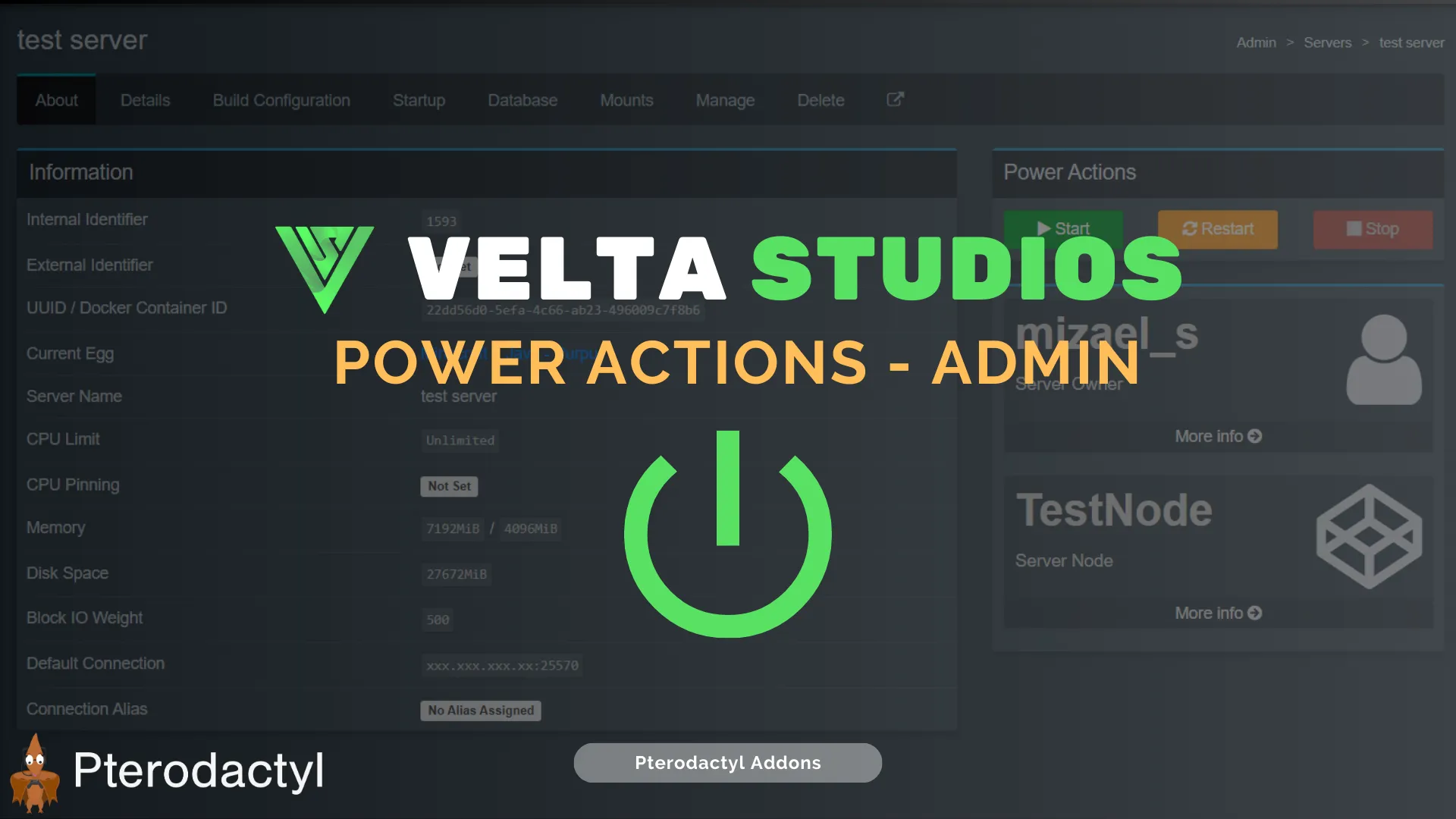 Managing server power actions efficiently is crucial for seamless server administration. The Power Actions - Admin addon allows you to start, stop, restart, and kill servers directly from the Pterodactyl admin panel.