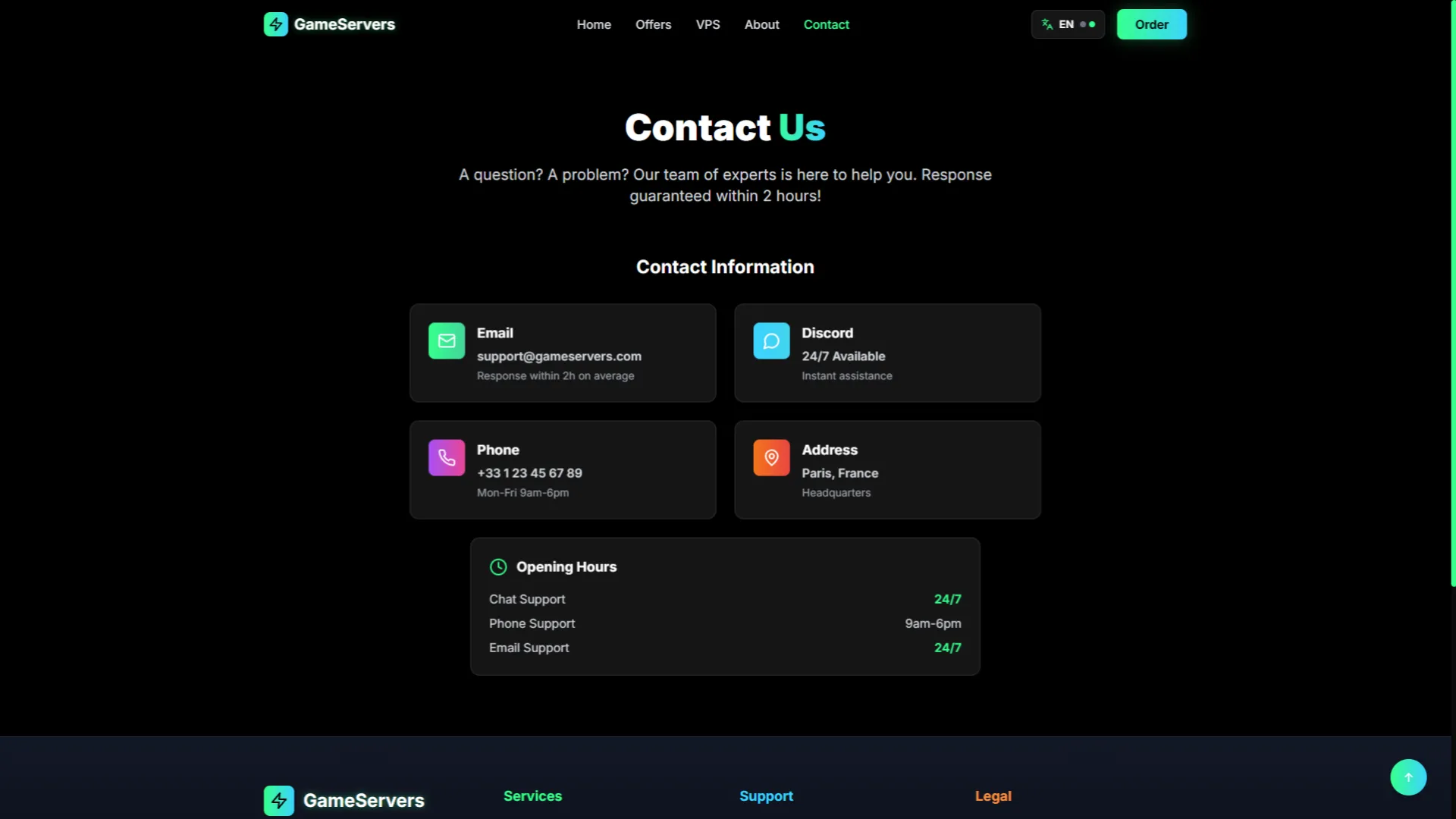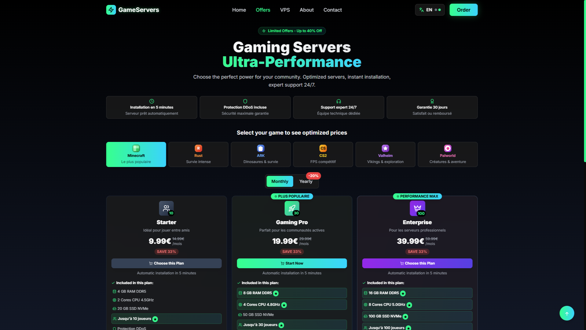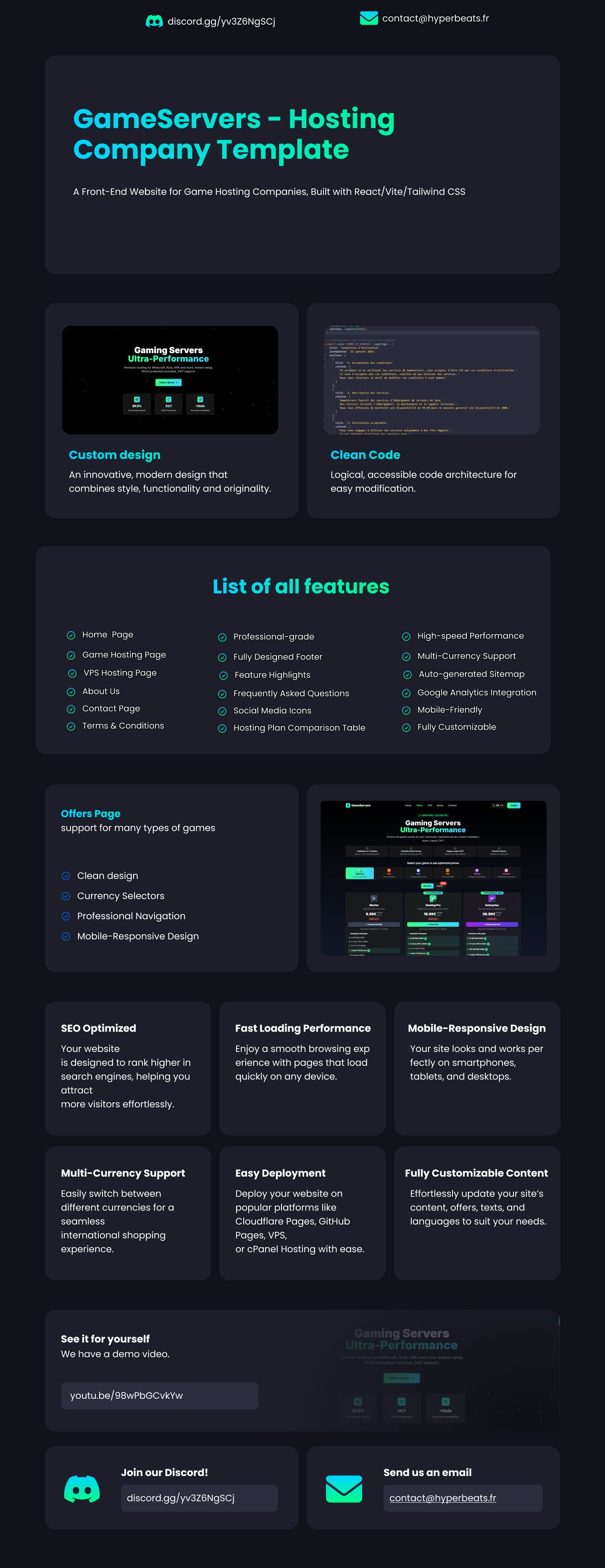 A fully responsive front-end solution for game hosting platforms, developed with React, powered by Vite, and styled using Tailwind CSS.