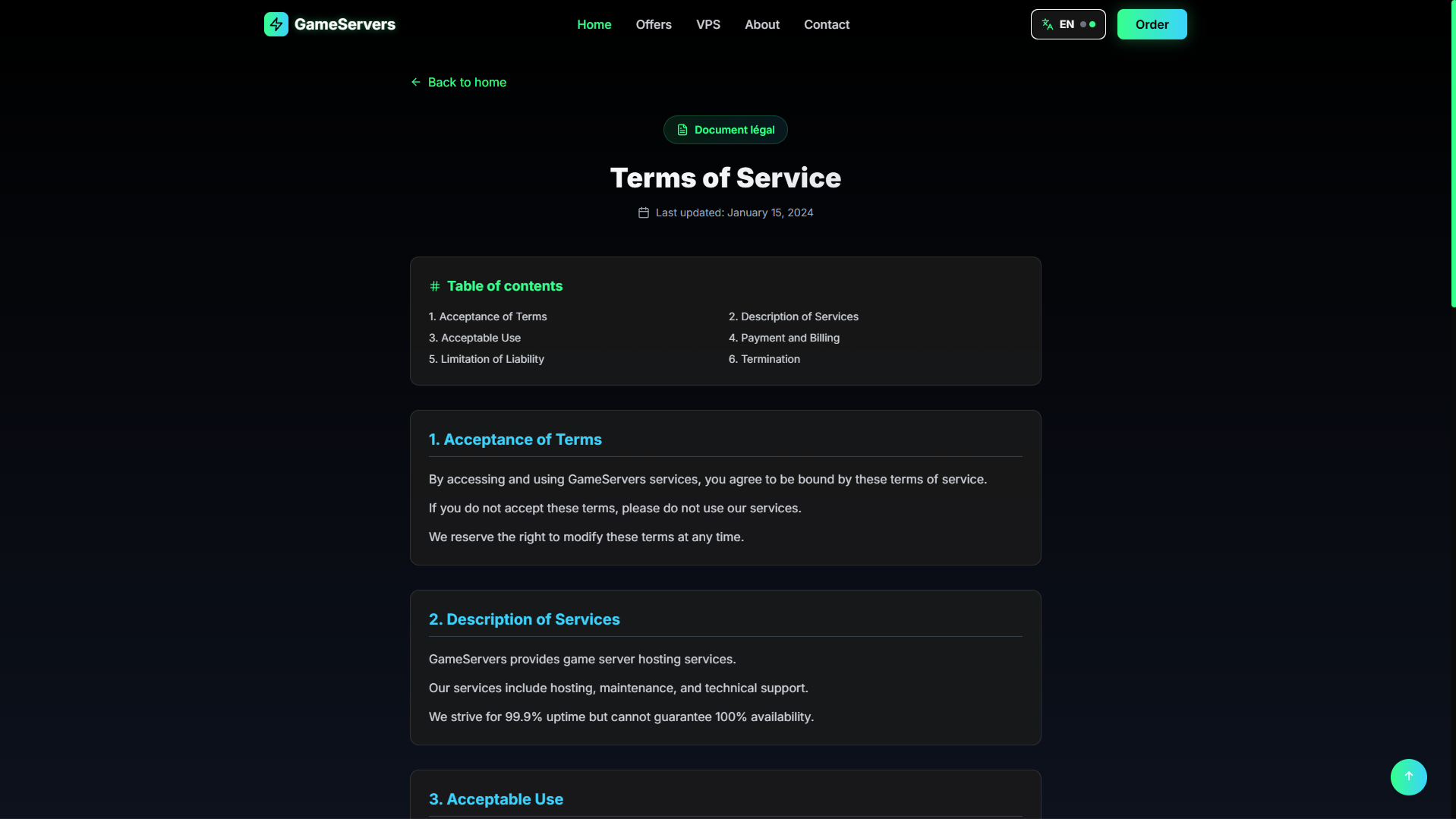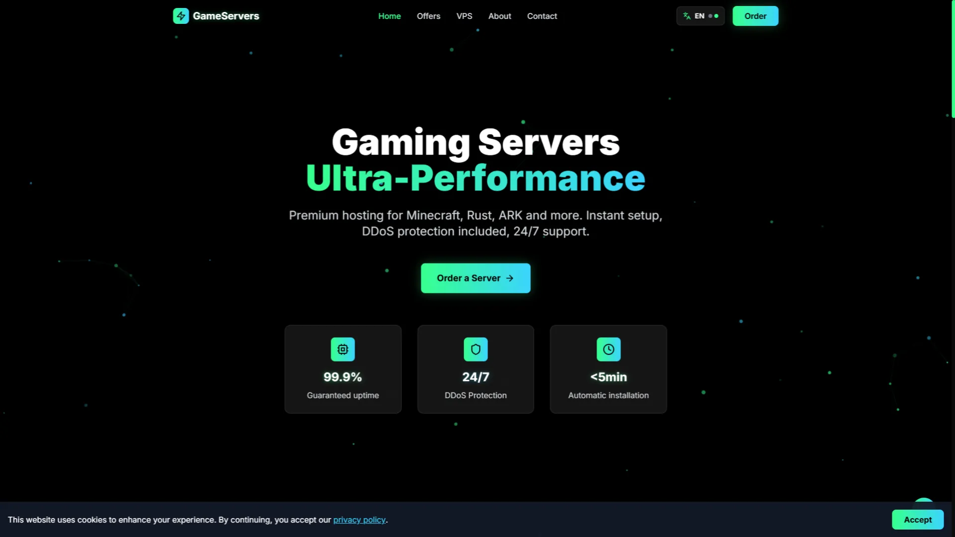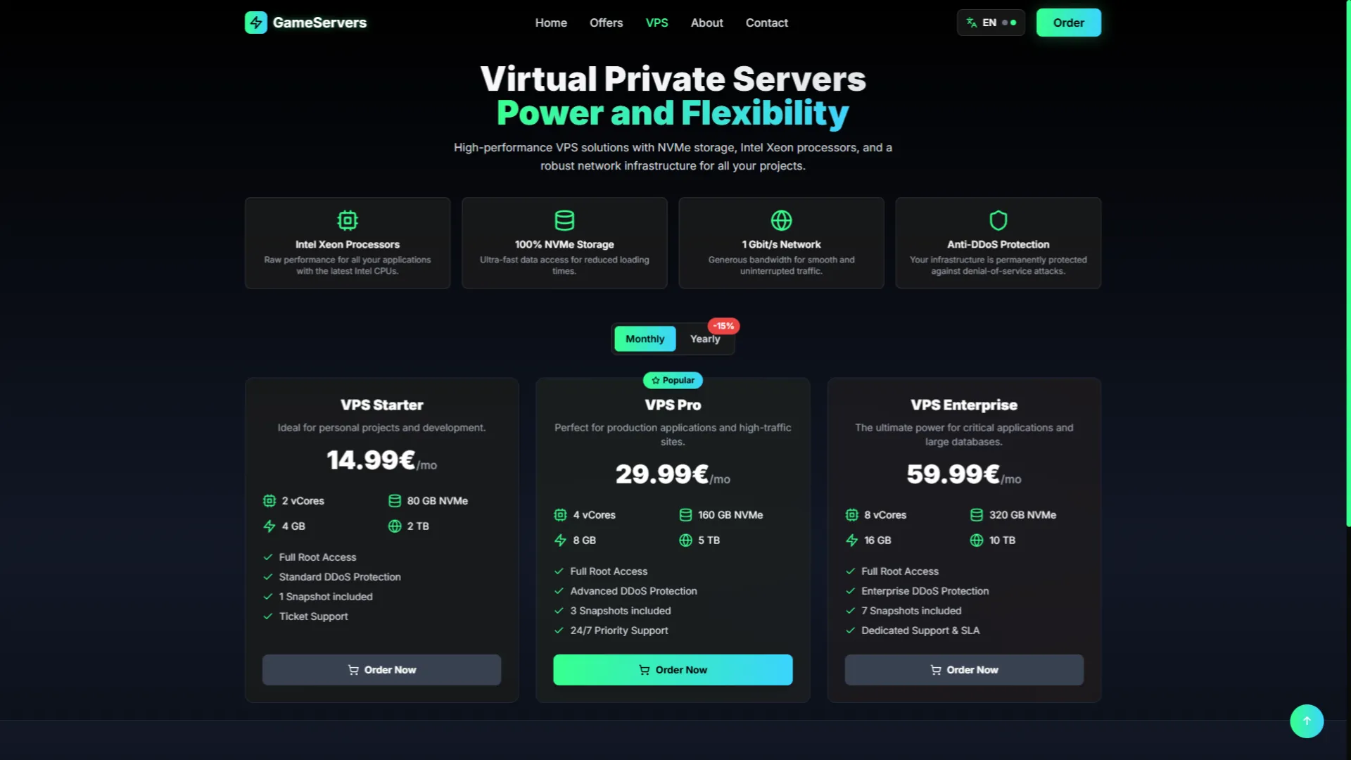A fully responsive front-end solution for game hosting platforms, developed with React, powered by Vite, and styled using Tailwind CSS.