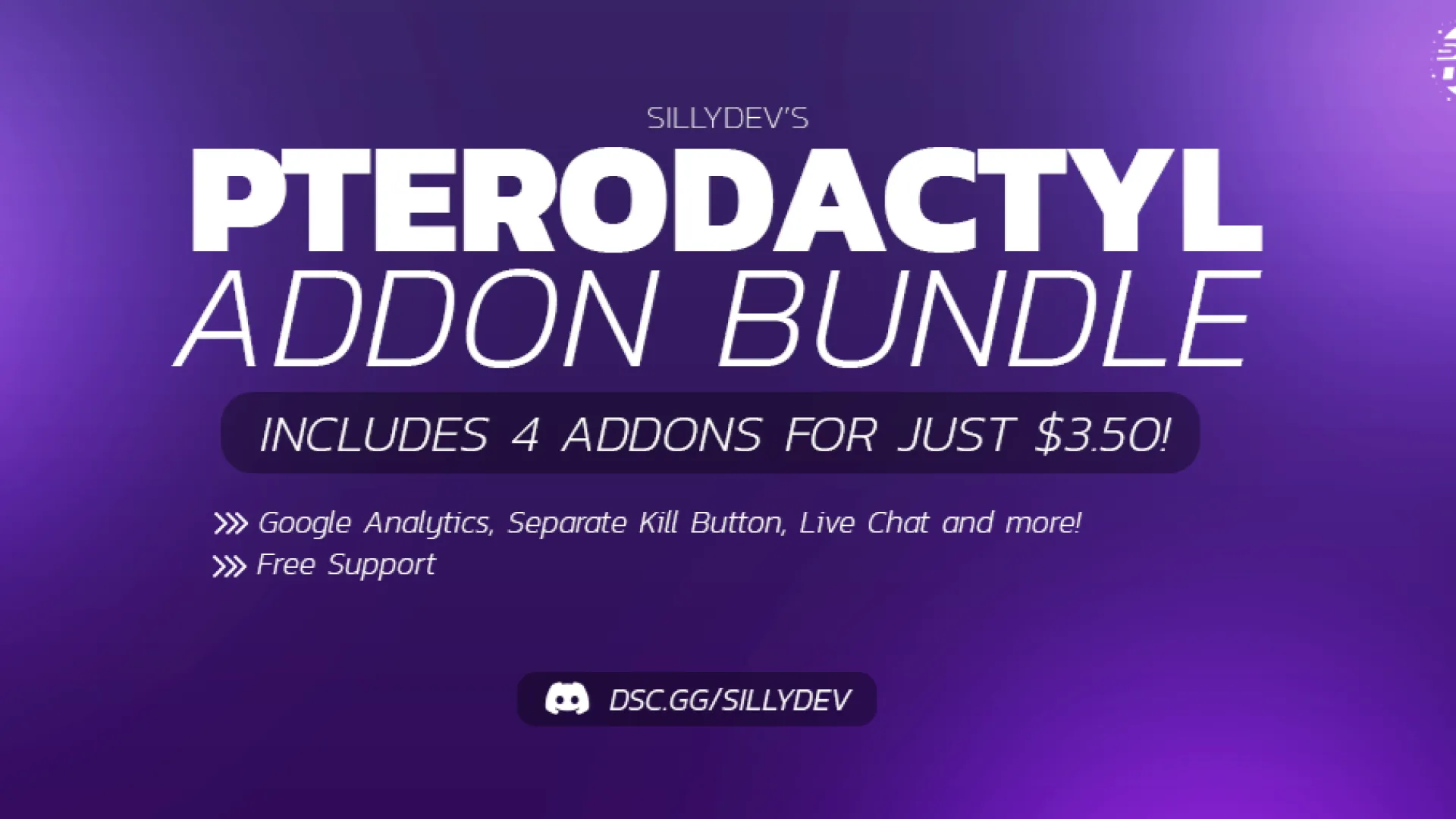 A Pterodactyl Addon pack that includes 4 addons for just $3.50, with even more coming soon! This bundle is a collection of smaller addons that I decided would not be worth selling separately.
