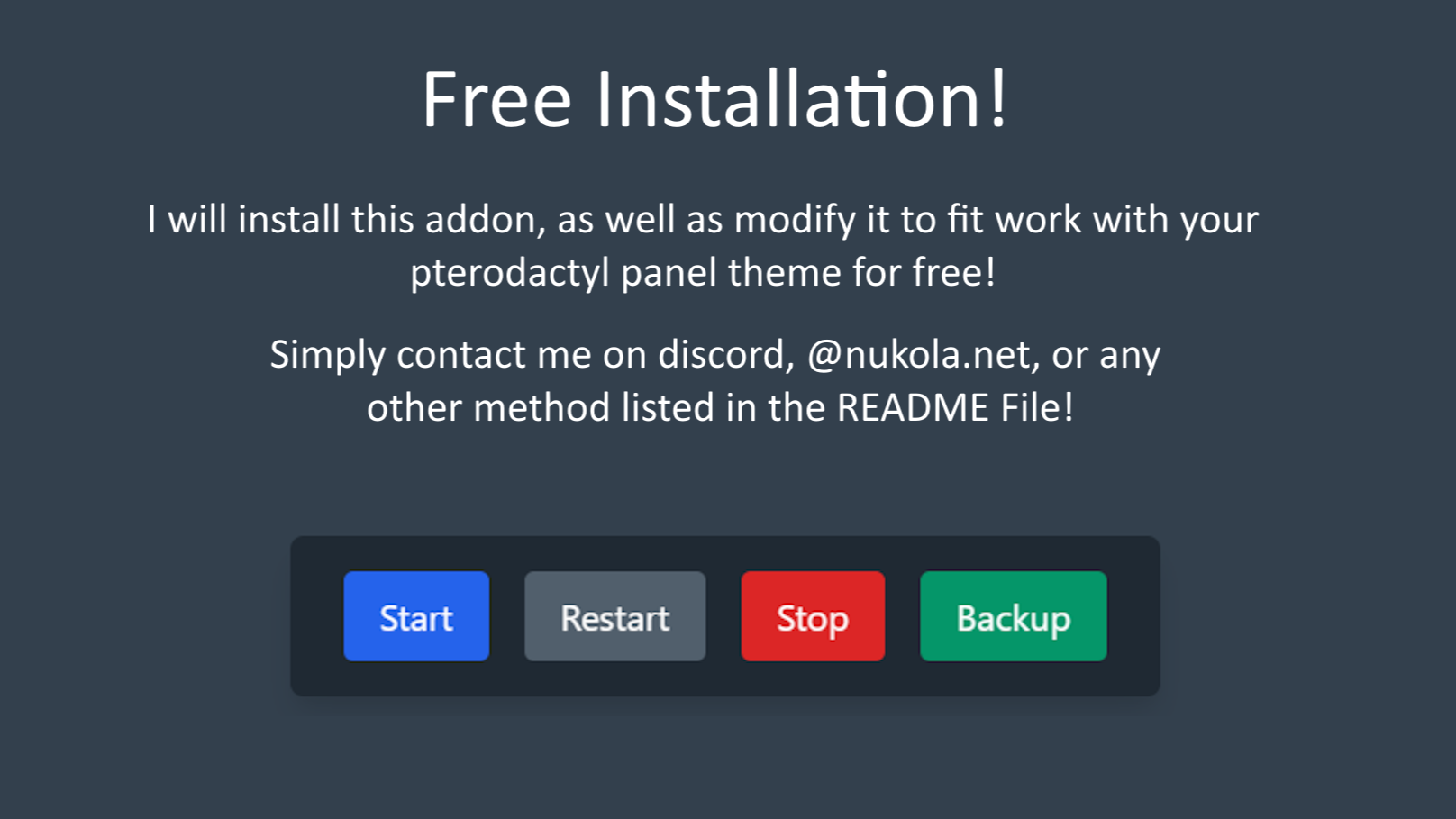 This is a pretty simple addon. Easily manage power actions & create server backups all from your server dashboard.