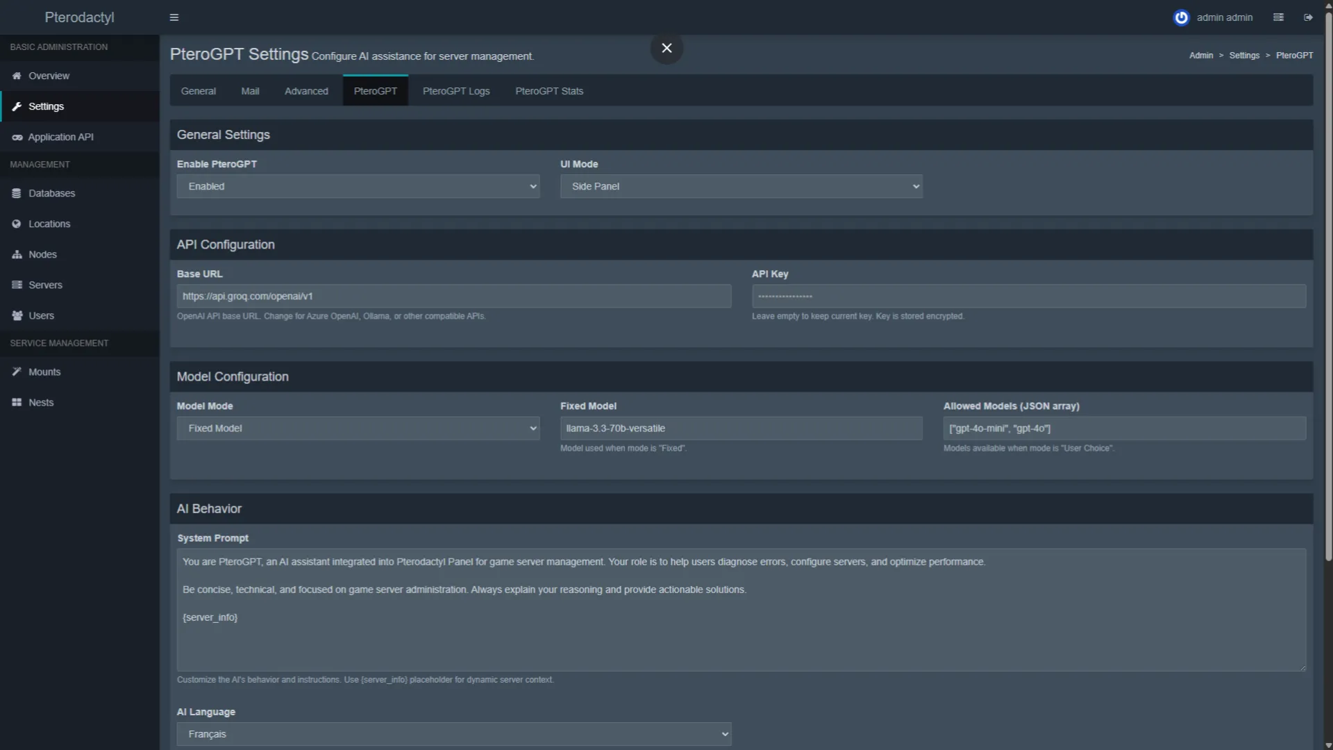 > PteroGPT - Your new AI Assistant directly on Pterodactyl !