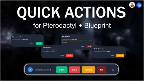 Quick Actions for Pterodactyl Blueprint The easy & fast way to start/stop/restart your servers.