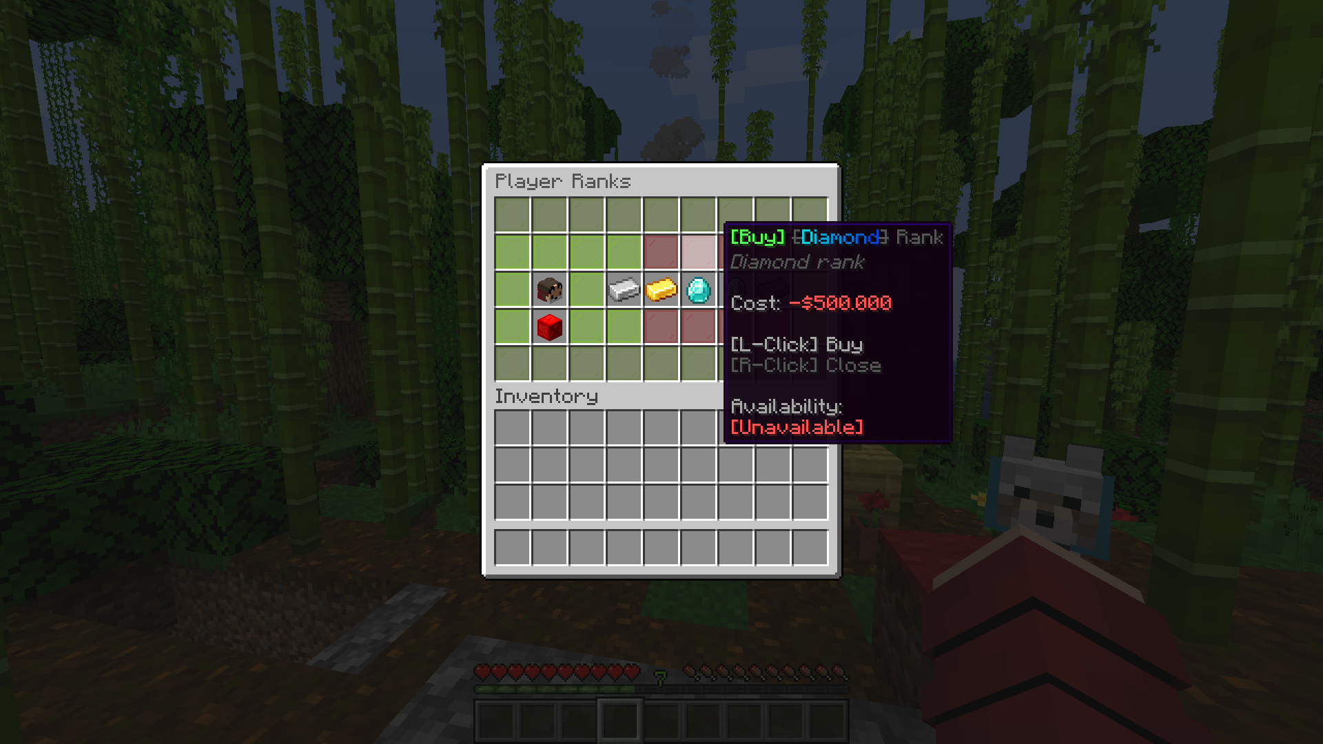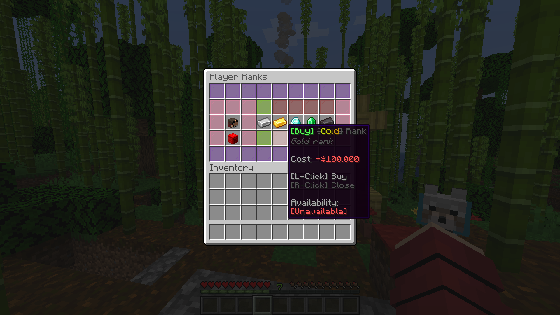 OVERVIEW: Say goodbye to pay-to-win! With this configuration, players can buy their new ranks with in-game earned money. With six pre-configured ranks, pre-added permissions, and perks, your players will love it! It even comes with five different theme colors!