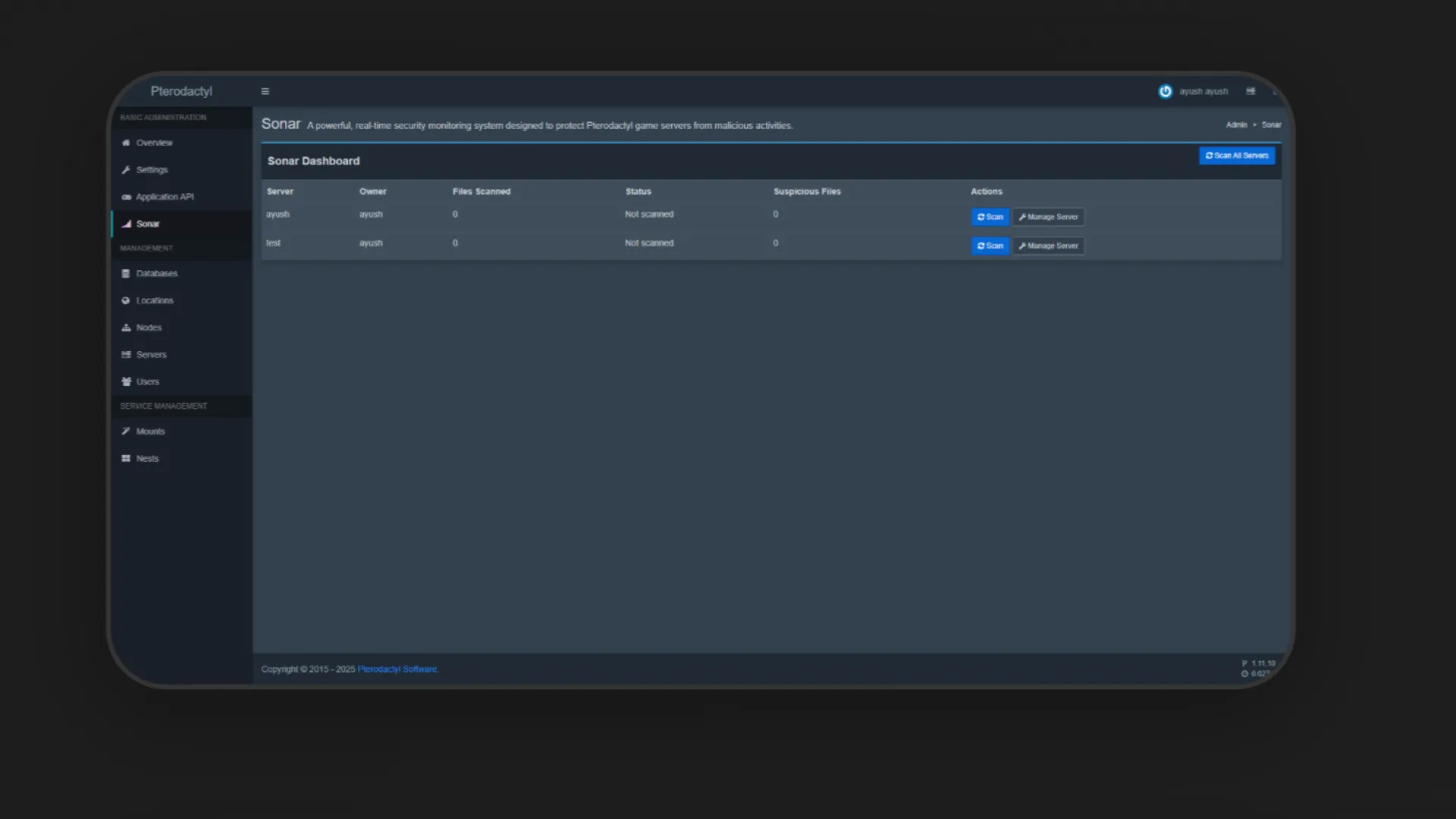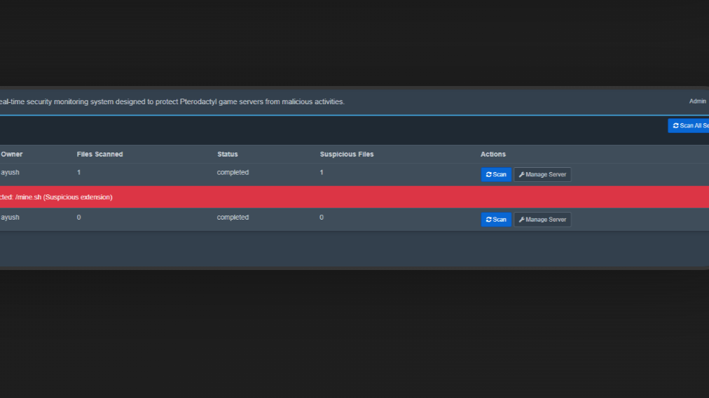 Sonar | Advanced Security Monitor v1.0 A powerful, real-time security monitoring system designed to protect Pterodactyl game servers