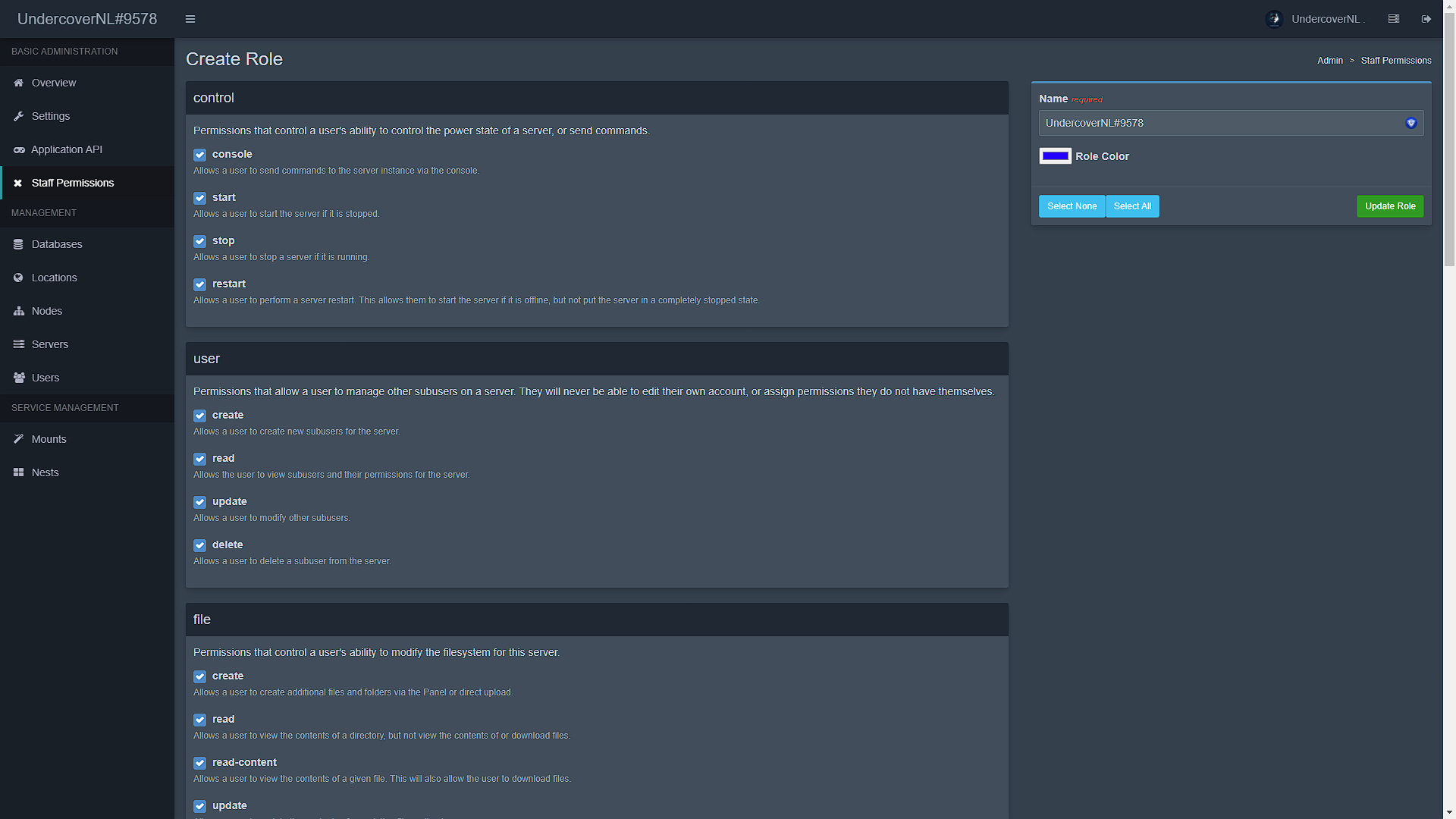 With this Pterodactyl addon you can create roles with certain server permissions for all your staff. Just like when creating a subuser.