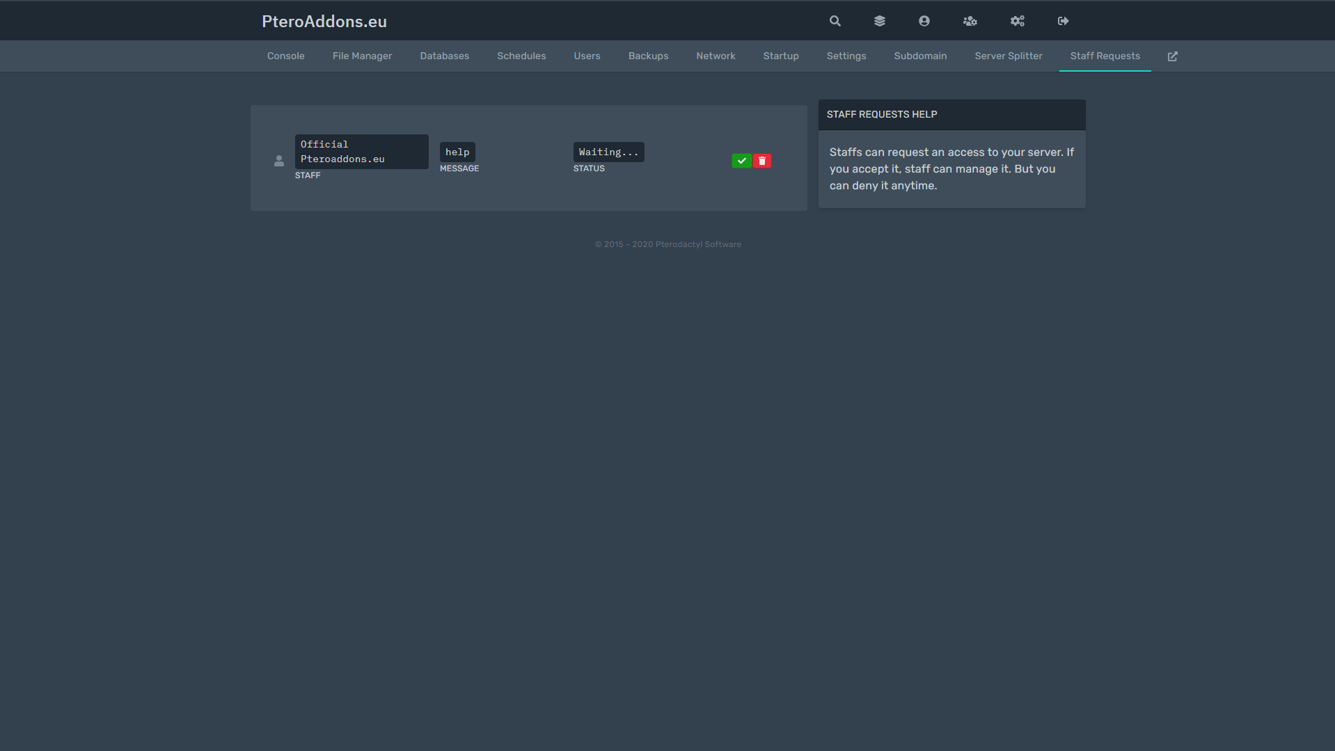 Description: Staff can request to manage the servers and server owners can accept or deny this request.