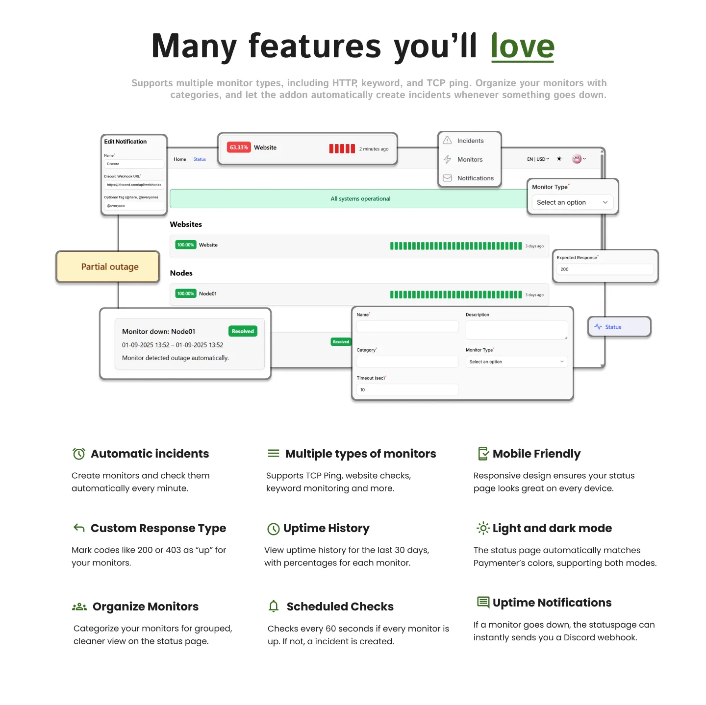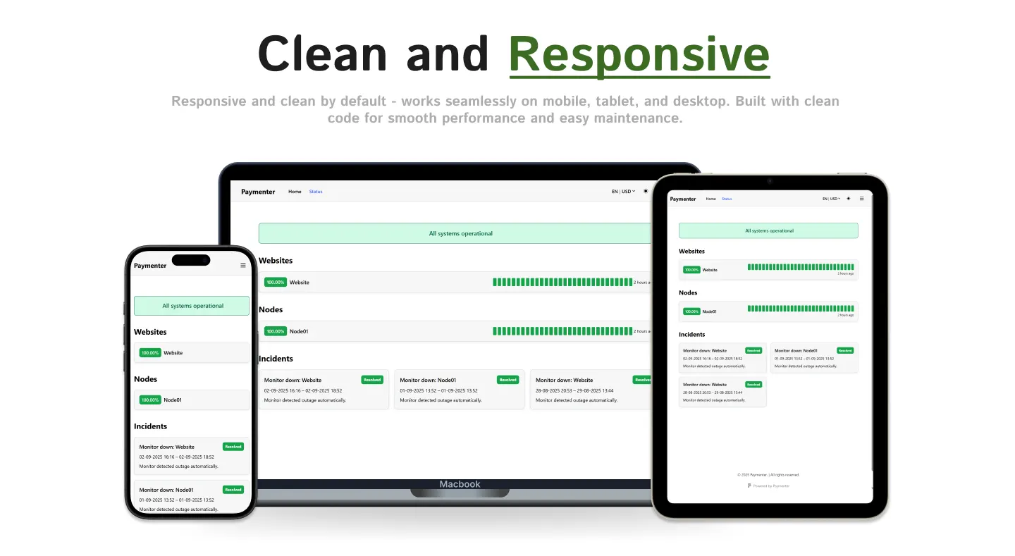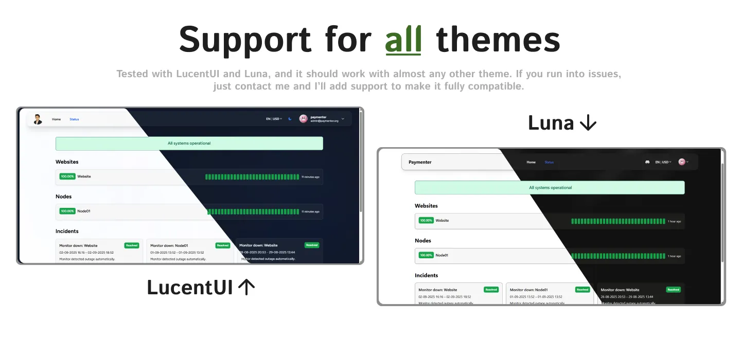 Add a nice statuspage to your Paymenter store. Add monitors and let your site check if they're up!