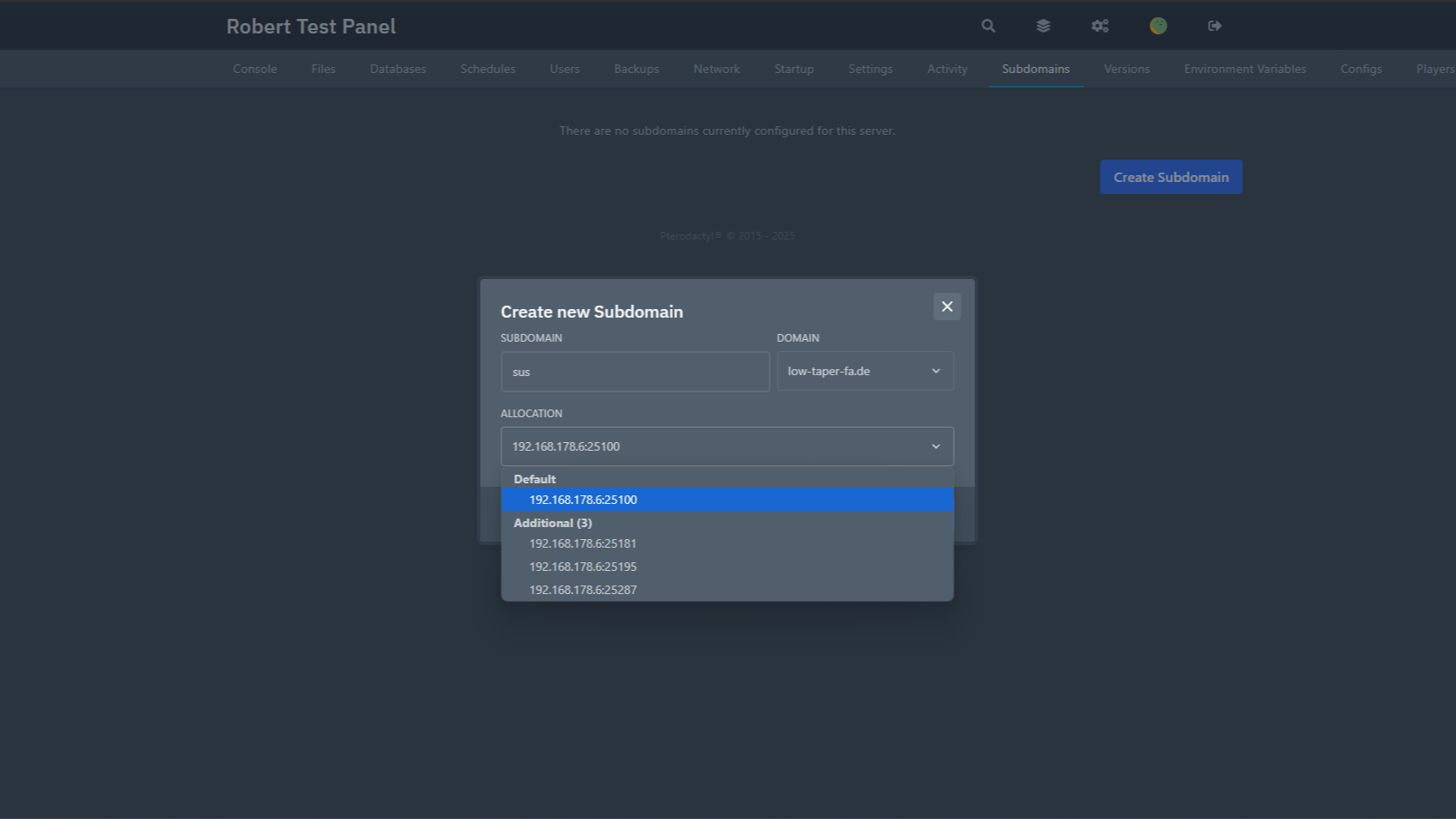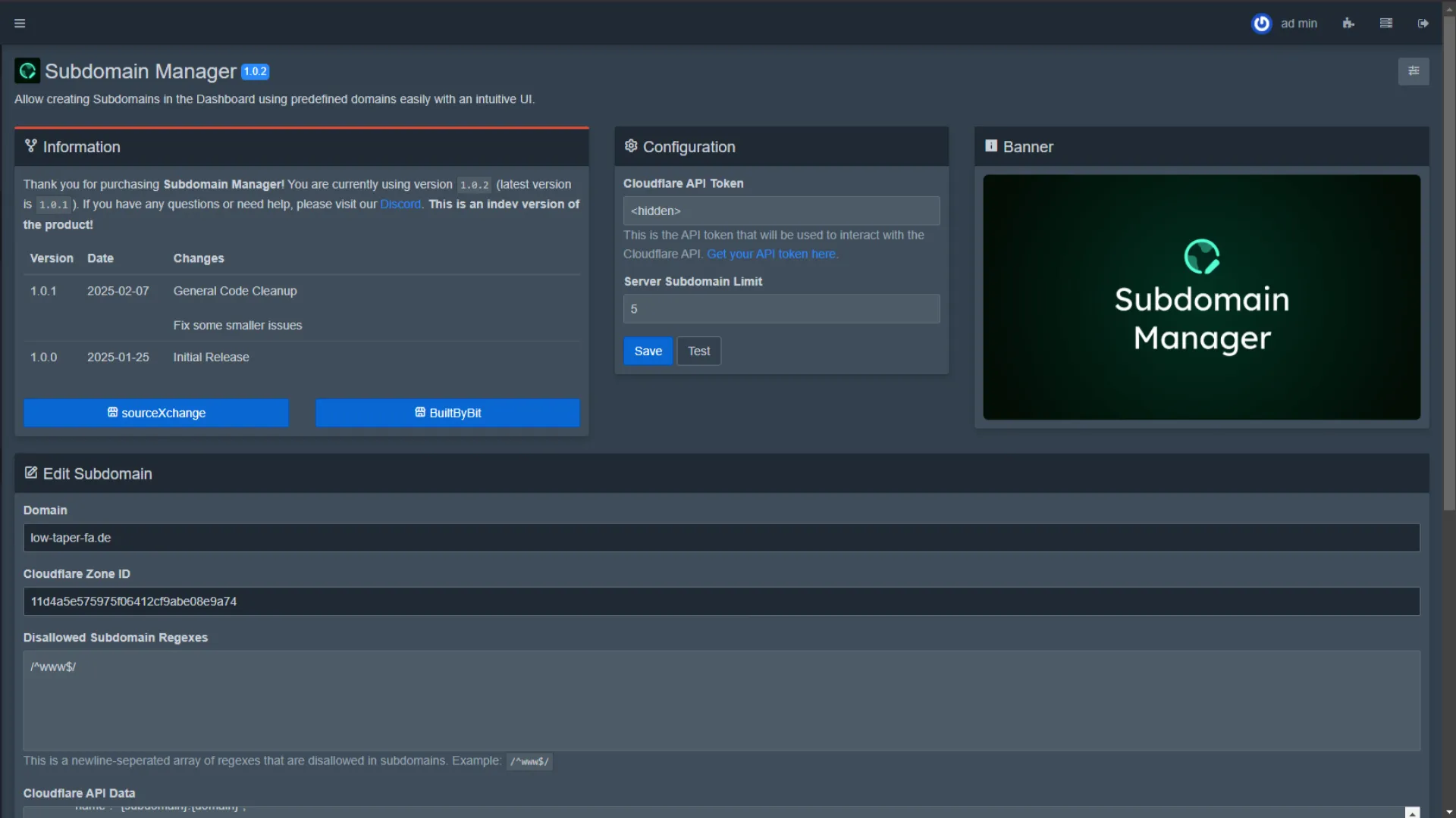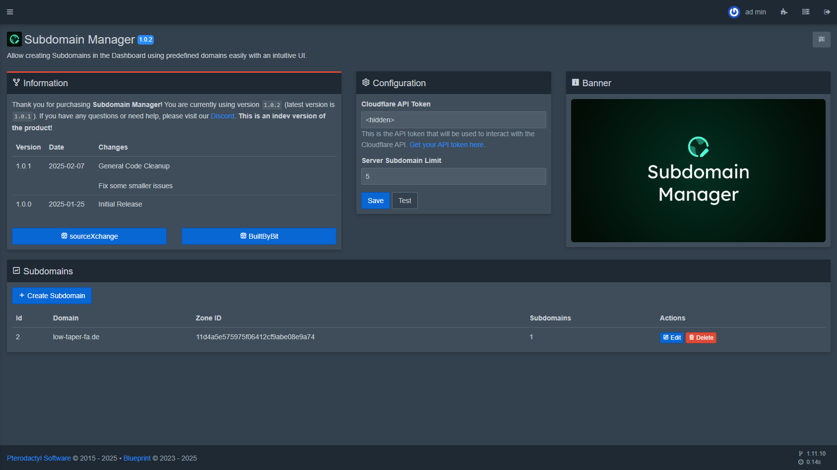 This extension adds the ability to easily create and manage subdomains on servers for various games, mainly minecraft, using cloudflare.