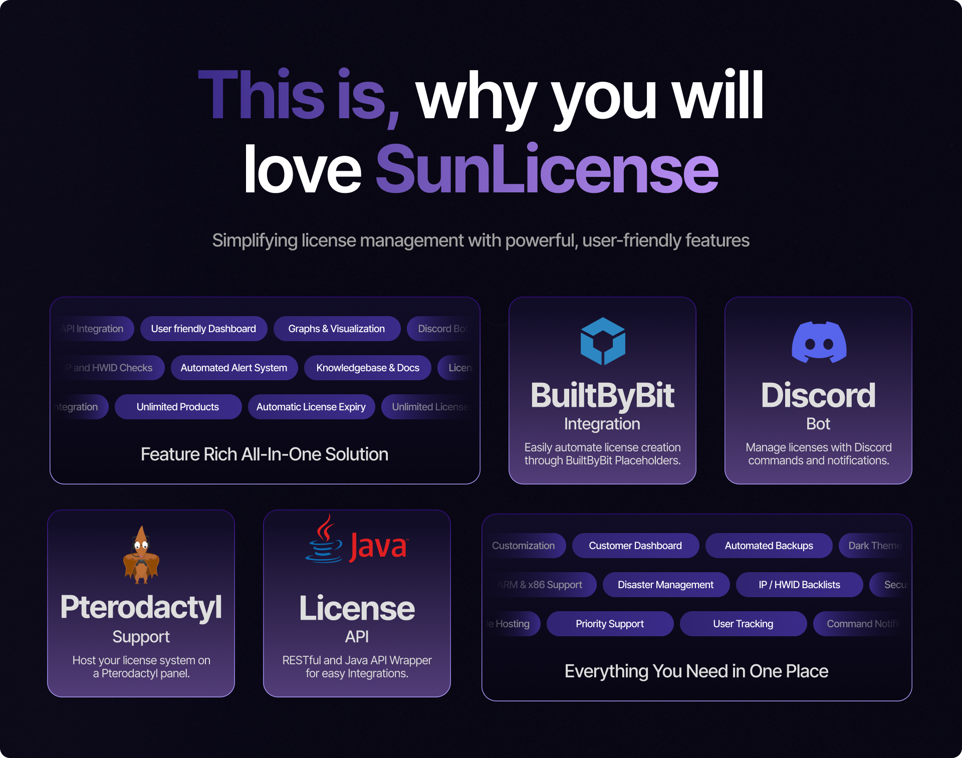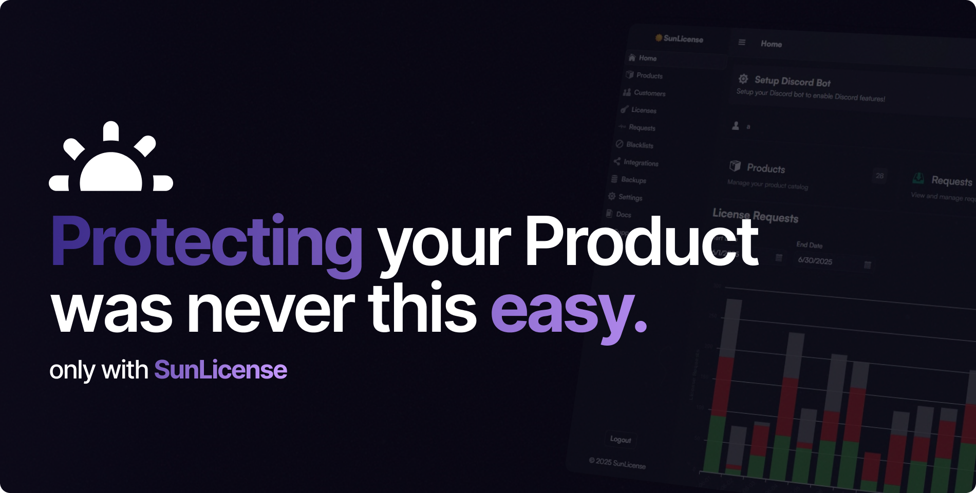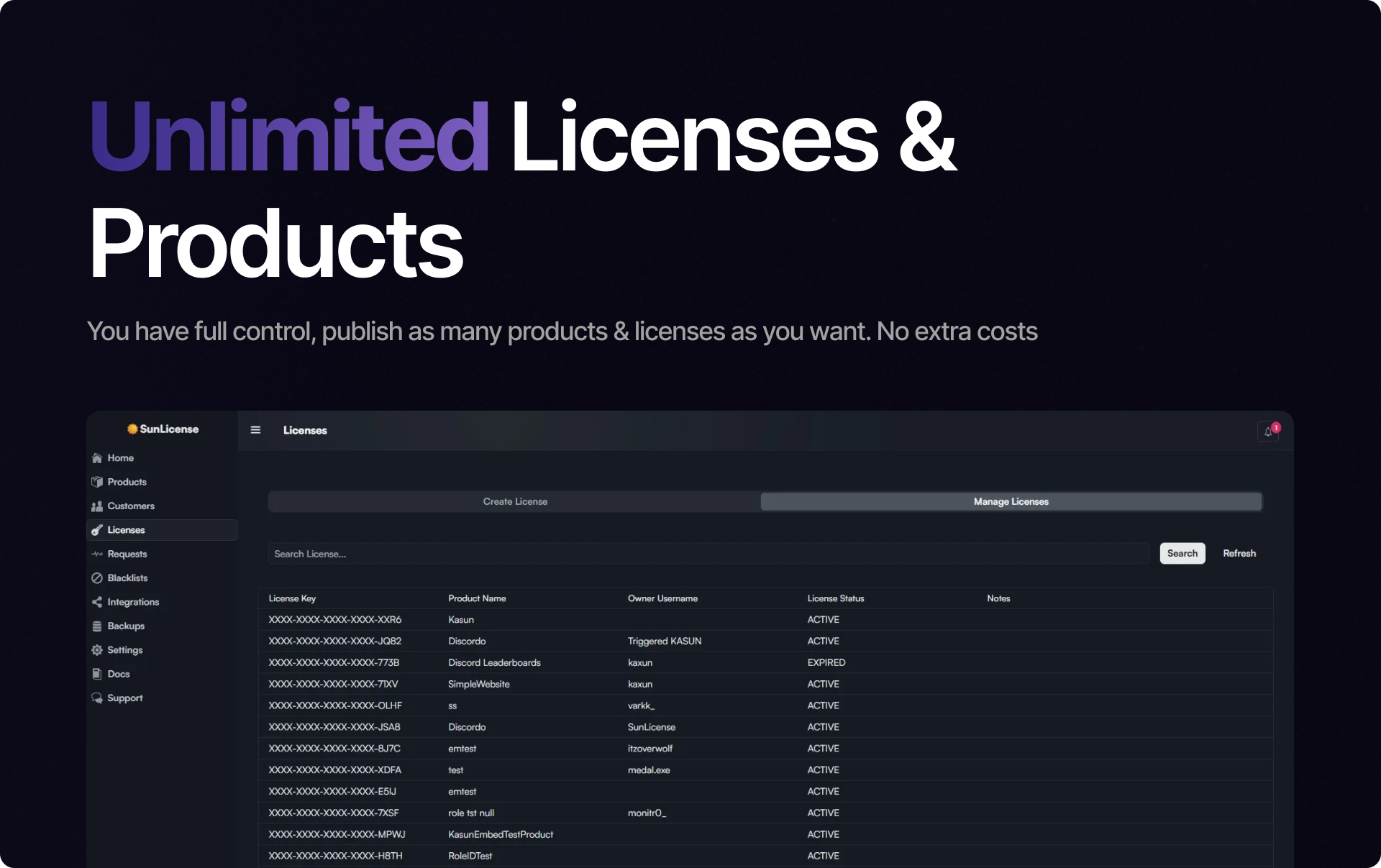 Effortlessly manage licenses, track usage, and secure your products with SunLicense. Discover powerful tools, including a web dashboard, API integrations, and real-time notifications, all designed for seamless management.