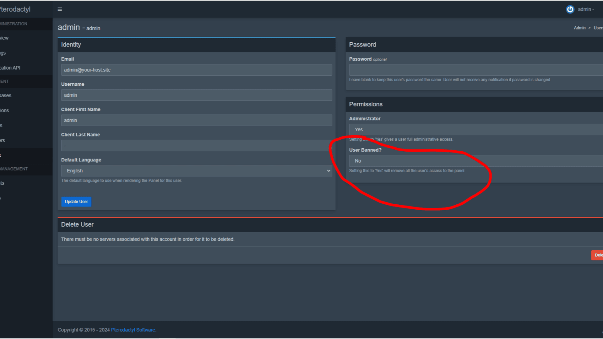 The User Banning System is an easy to use Pterodactyl Panel Addon that can be used for versions 1.11.X