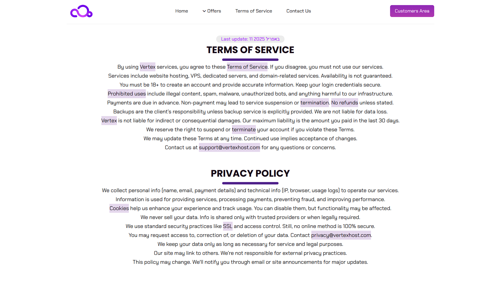 Vertex Host Premium Hosting Template
