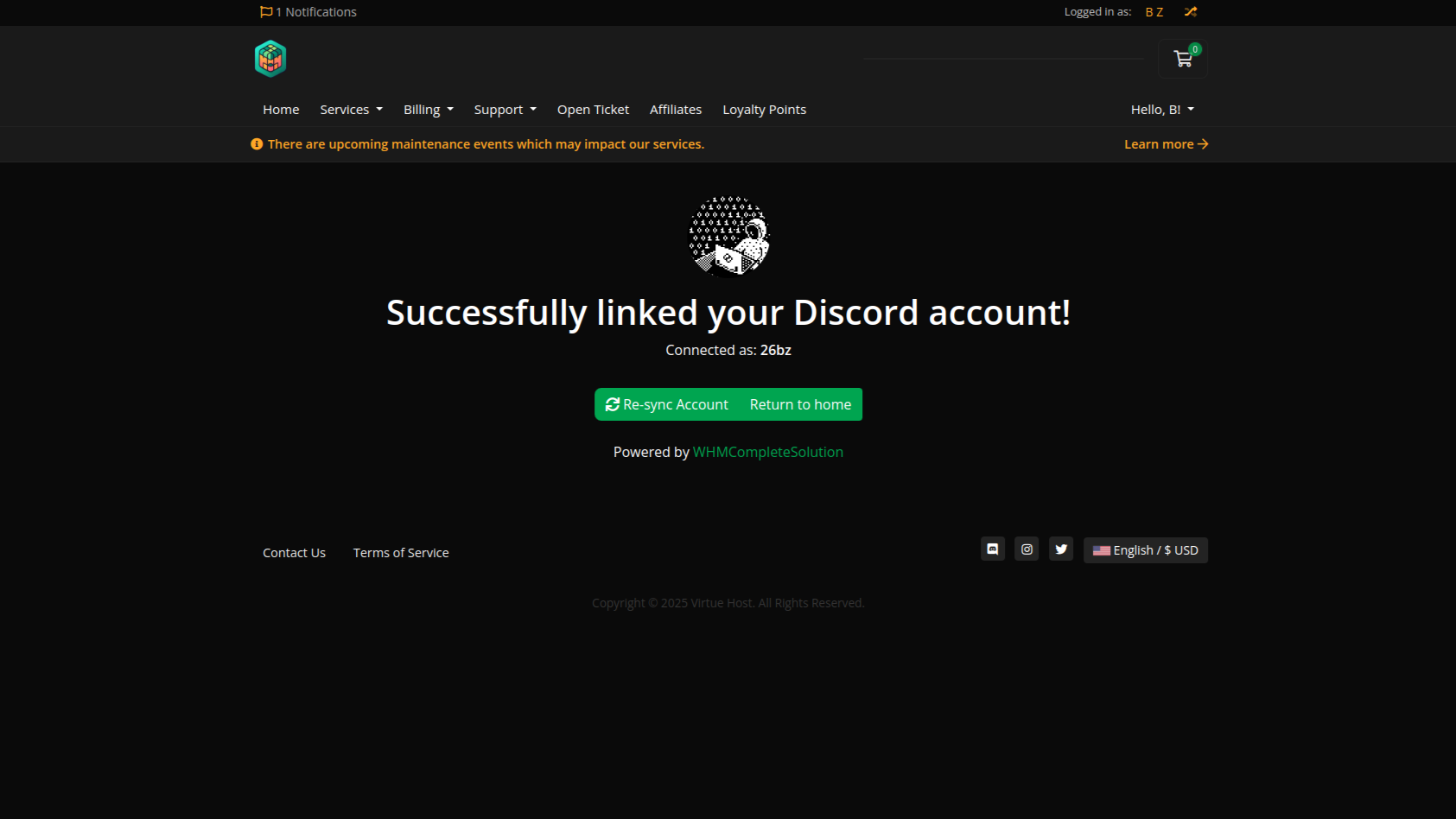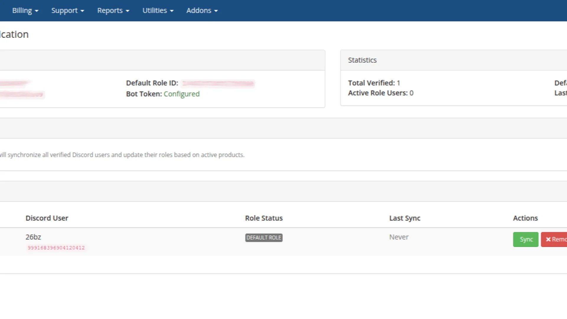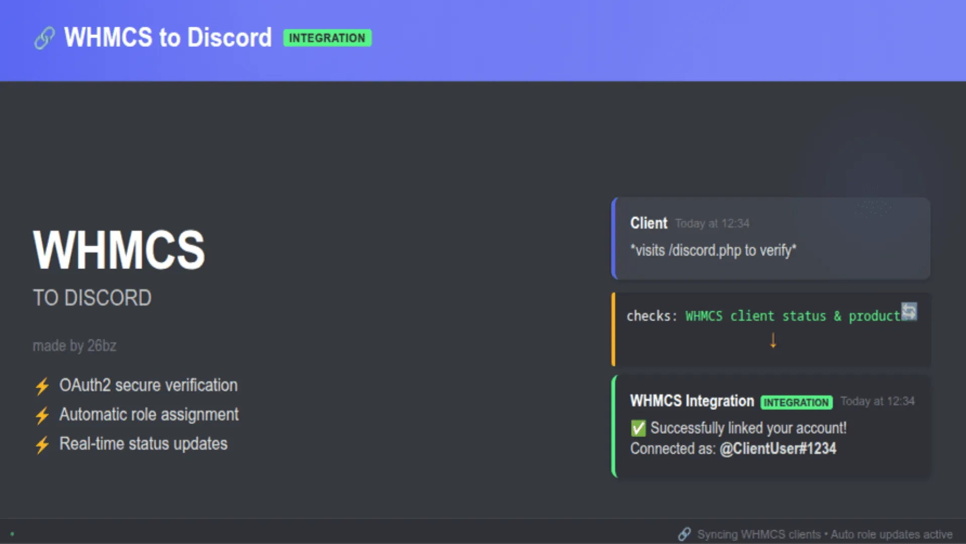 This integration allows WHMCS clients to automatically receive Discord roles based on their account status. Clients with active products receive one role, while verified clients without active products receive a different role. The system automatically updates roles when client status changes.