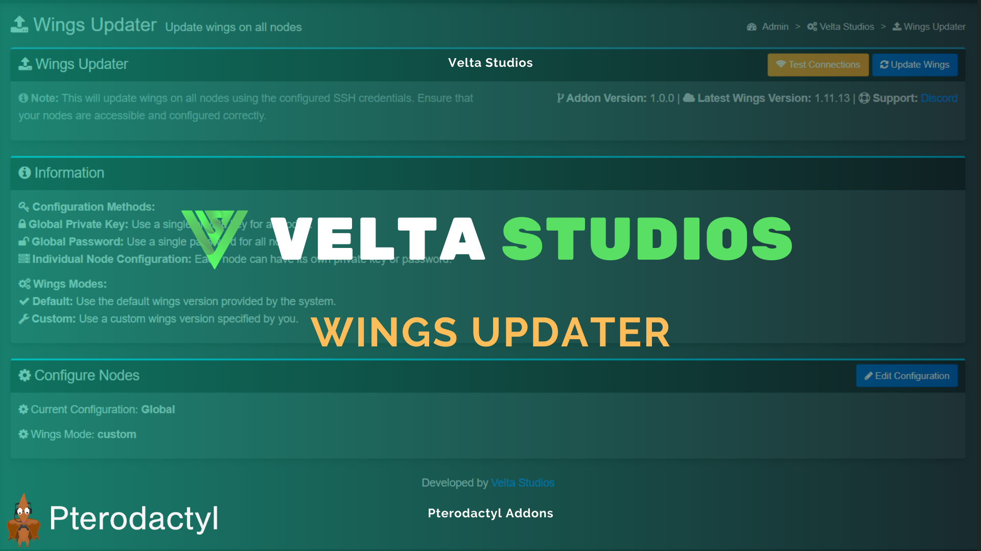 Keeping your server's Wings updated is crucial for maintaining stability, security, and access to the latest features. The Wings Updater addon for Pterodactyl simplifies this process by allowing you to update Wings on all nodes with ease. With this addon, users can configure and execute updates through the admin dashboard, ensuring your nodes are always up-to-date without the need for manual intervention.