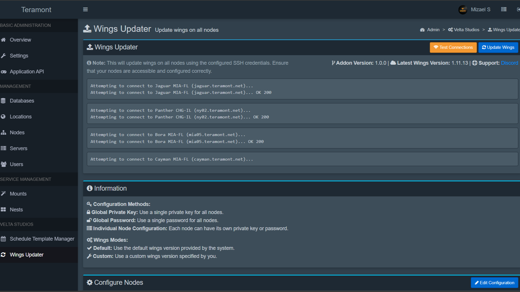 - Ensures nodes are always running the latest version of Wings, enhancing security and performance.